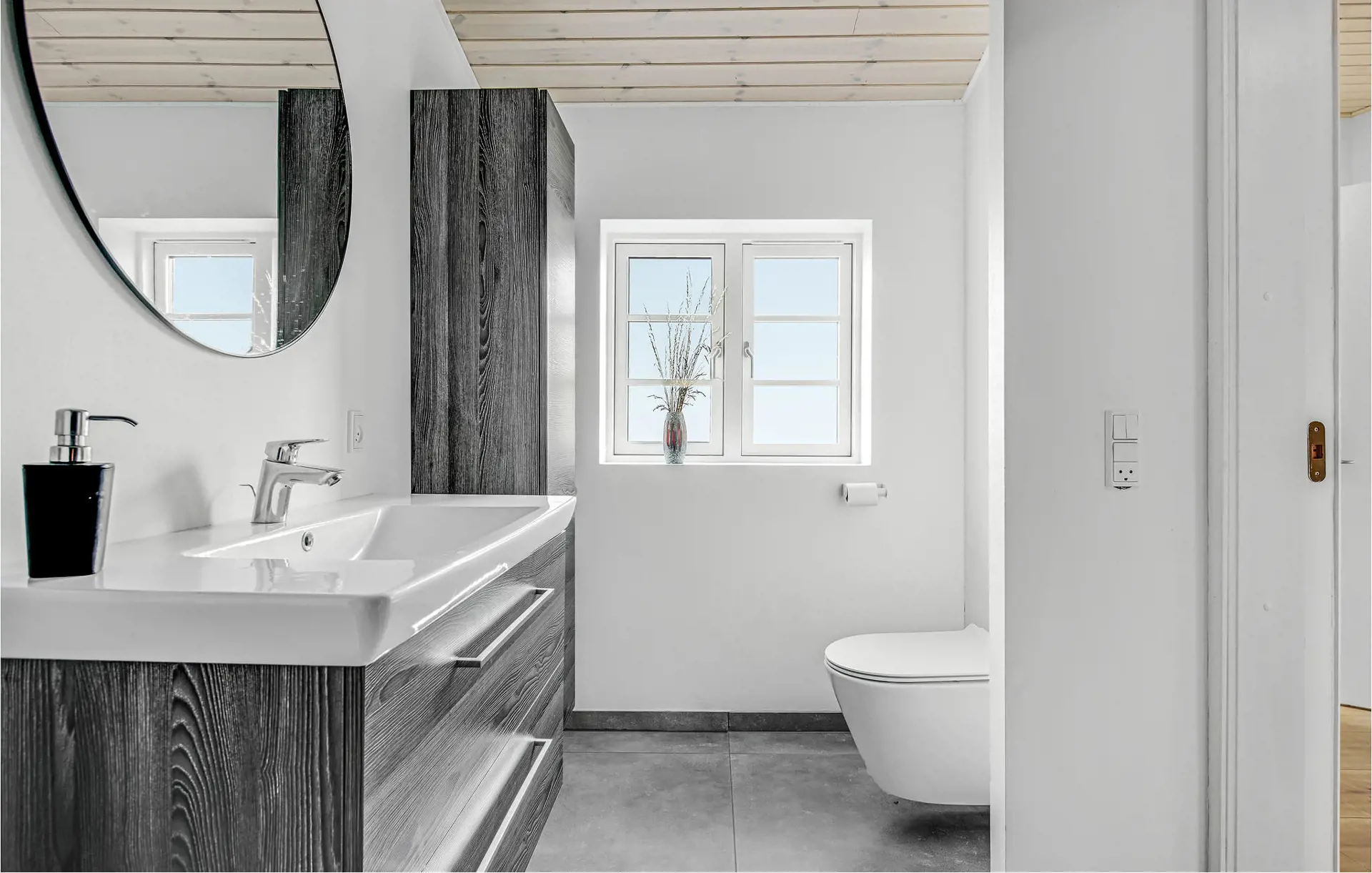 Verbringen Sie erholsame Tage in diesem geschmackvoll eingerichteten Ferienhaus, das Komfort und eine behagliche Atmosphäre vereint. Nur wenige Minuten trennen Sie vom feinsandigen Skovmose Strand, der mit seinem flachen Wasser und weiten Ufer ideal für Familien ist. Im Inneren empfängt Sie ein lichtdurchfluteter Wohnbereich mit großen Fenstern, die den Blick in den Garten freigeben. Lehnen Sie sich auf dem gemütlichen Sofa zurück und genießen Sie den Abend vor dem knisternden Kaminfeuer. Kochen Sie gemeinsam in der offenen, gut ausgestatteten Küche und lassen Sie sich Ihre Mahlzeiten im großzügigen Essbereich schmecken. Nach einem aktiven Urlaubstag lädt die Sauna dazu ein, die Muskeln zu entspannen und neue Energie zu tanken.
