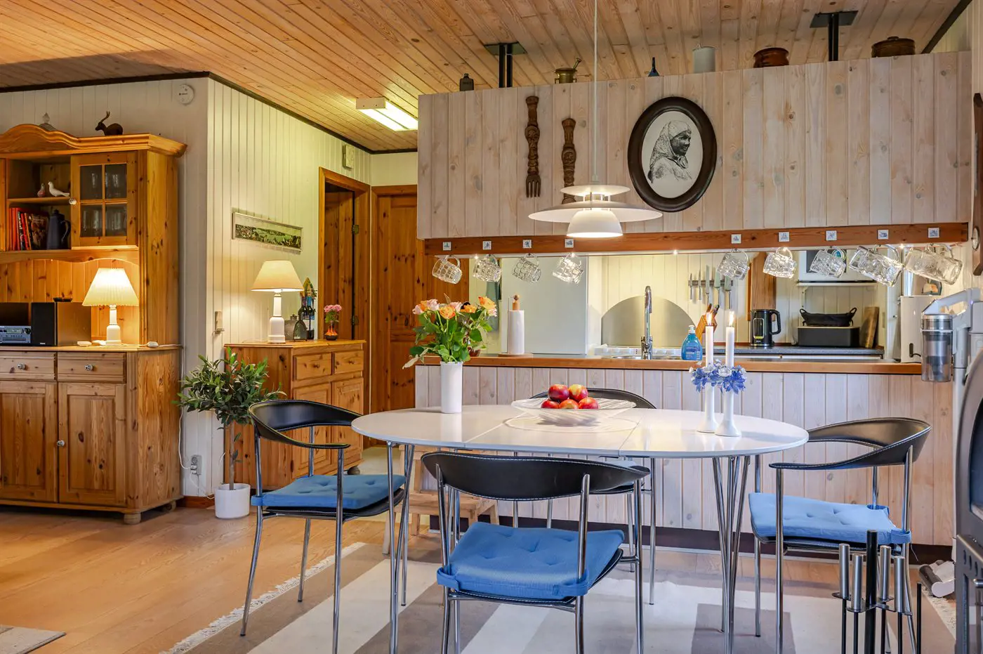 Das Ferienhaus eignet sich für 6 Personen sowie 1 Kleinkind bis zu 3 Jahren. Die Ferienunterkunft hat eine Wohnfläche von 70 m² und wurde 1987 gebaut. 2004 wurde die Ferienunterkunft renoviert. Haustiere dürfen nicht mitgebracht werden. In der Ferienunterkunft ist eine energiesparende Luft zu Luft Wärmepumpe installiert. Die Ferienunterkunft ist mit Waschmaschine ausgestattet. Tiefkühlmöglichkeit mit 50 Liter Nutzinhalt. Es gibt außerdem einen Kaminofen. Für die jüngsten Feriengäste ist 1 Kinderhochstuhl vorhanden.