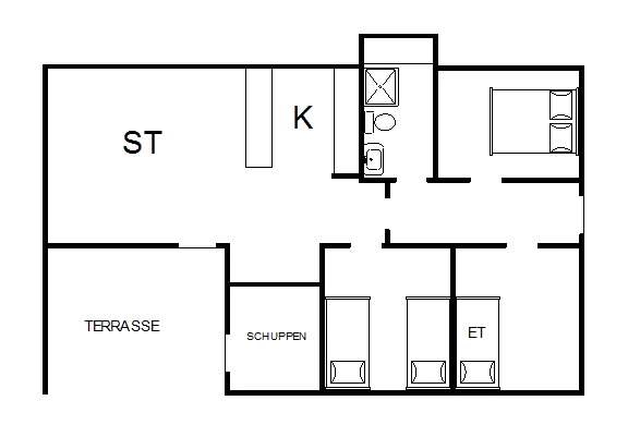 Das schöne Ferienhaus in Blavand mit einem großen Naturgrundstück hat eine sehr ruhige Lage. Die helle Küche ist in direkter Verbindung mit dem Wohnzimmer. Deshalb können Sie, auch wenn Sie kochen, zusammen mit Ihrer Familie sein. Im Wohnzimmer finden Sie den Kaminofen, der an kälteren Tagen Wärme spendet und eine gemütliche Urlaubsstimmung verbreitet. Das Wohnzimmer hat Zugang zur großen Terrassen, auf der Sie ungeniert die Sonne genießen können. Ein Teil von der Terrasse ist überdacht, weshalb Sie auch an einen Regenwettertag draußen sitzen können. Das Ferienhaus hat 3 Schlafzimmer mit 1 Doppelbett, 2 Einzelbetten und 2 Etagenbetten. Auf dem Badezimmer finden Sie sowohl eine Waschmaschine als auch einen Wäschetrockner. Schönes und gemütliches Ferienhaus in Blavand mit kostenloser Endreiningung.Kleiner zusätzlicher Gefrierschrank im Schuppen