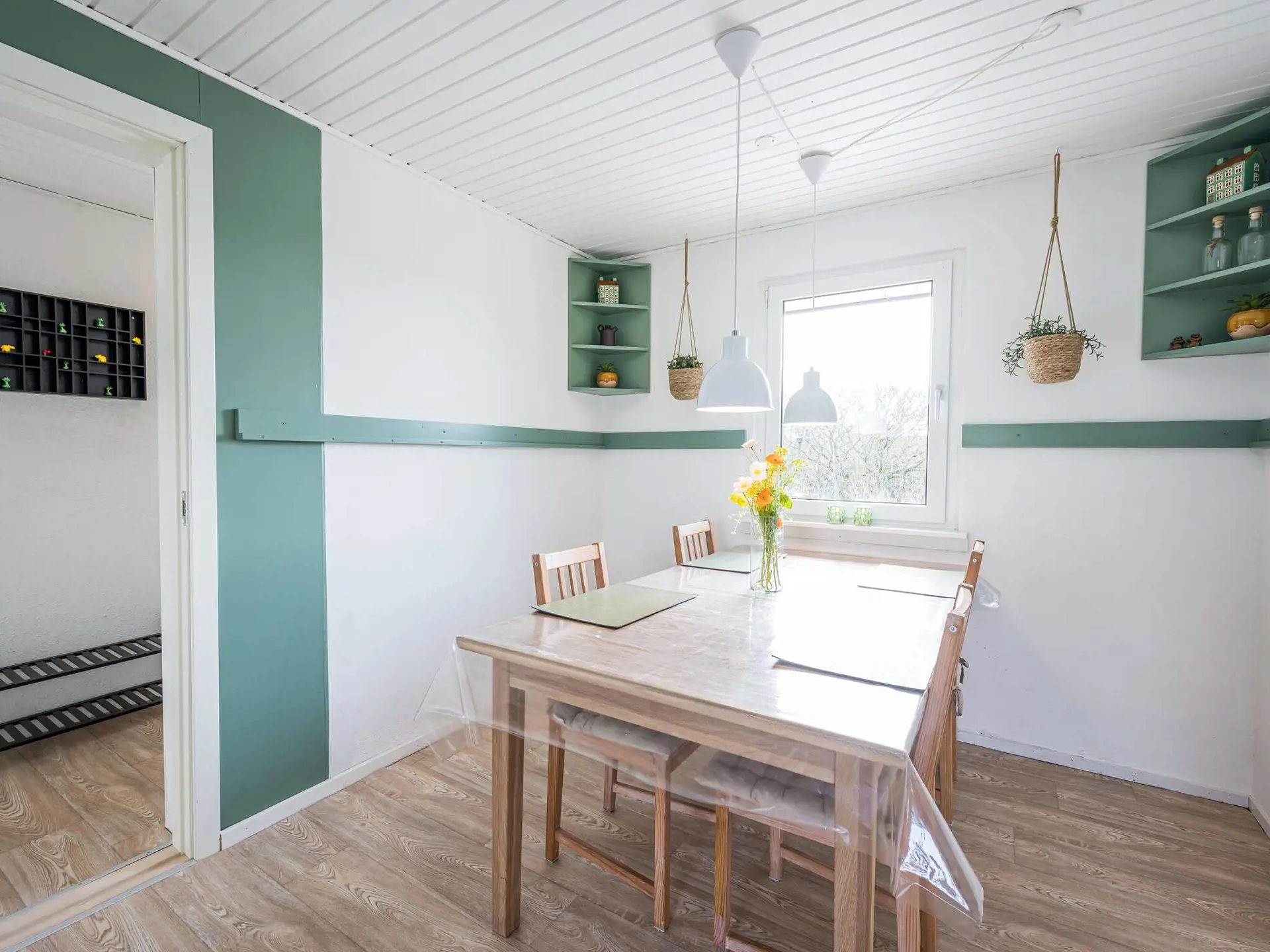 Im Inneren bietet der offene Küchen- und Wohnbereich einen einladenden Raum für das Familienleben. Ein Holzofen sorgt für gemütliche Abende, während eine klimafreundliche Wärmepumpe das ganze Jahr über für angenehme Temperaturen sorgt. Vom Wohnbereich aus gelangt man direkt auf eine überdachte Holzterrasse mit bequemen Gartenmöbeln und Sonnenliegen. Von der Terrasse auf dem Deich genießen Sie einen atemberaubenden Panoramablick auf die umliegende Küstenlandschaft.