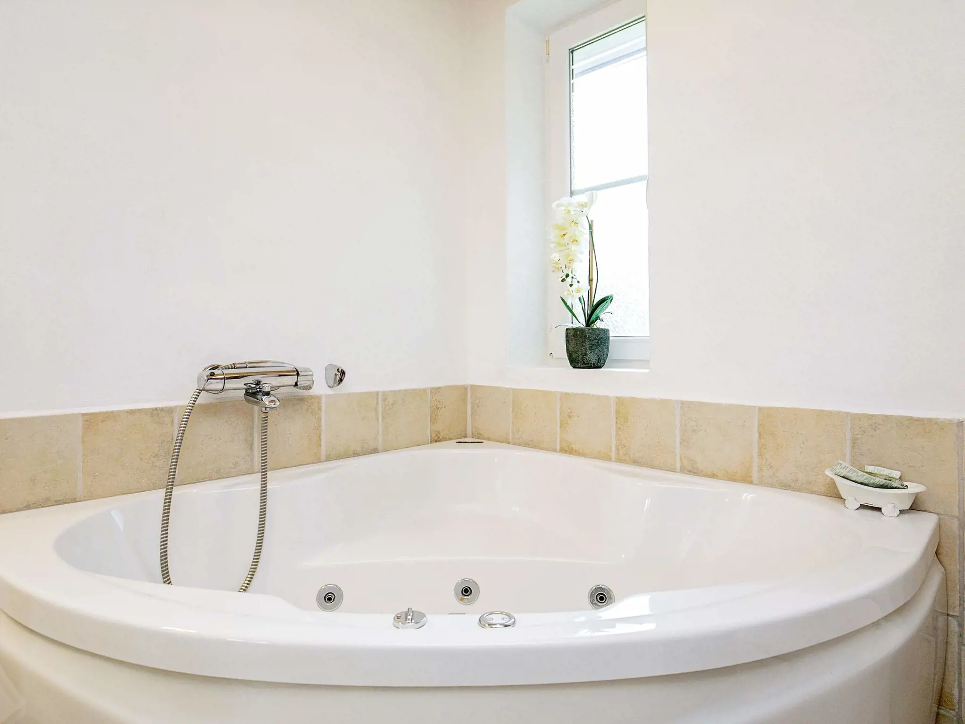 Das Ferienhaus präsentiert sich hell und geräumig, wobei die hochwertige Innenausstattung die Qualität des Hauses zusätzlich unterstreicht. Offener Küchen-/Wohnbereich für das Familienleben mit Ess- und Sitzecke und hellem Wohnambiente durch die vielen bodentiefen Fenster. Das Haus verfügt außerdem über drei große Schlafzimmer und zwei Badezimmer, eines davon mit Whirlpool und Sauna.