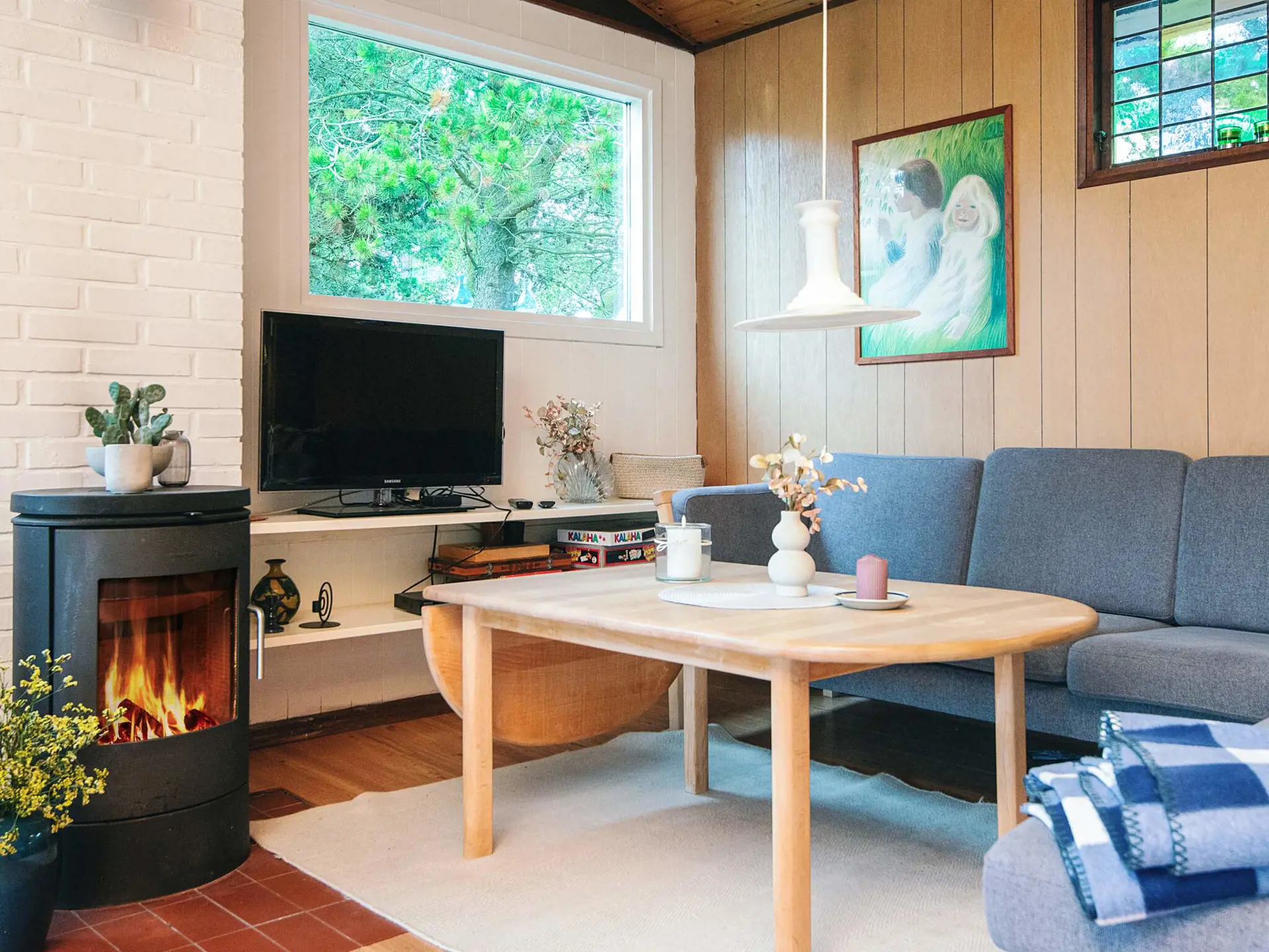 Ferienhaus mit heller, geschmackvoller Einrichtung und Badezimmer von 2002, auf umwachsenem Grundstück gelegen. Große, teilweise abgeschirmte Terrasse.