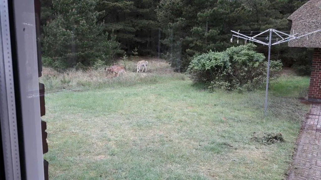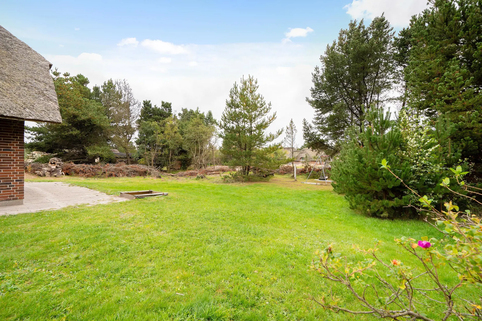 Der Außenbereich dieses Ferienhauses braucht sich auch nicht zu verstecken. Eine große und offen Terrasse lässt den Blick auf das Grundstück frei. Ihr könnt durchaus auch einmal mit Besuch von Wildtieren rechnen, denn in nur wenigen Minuten entfernt liegt ein großes Heidegebiet, welches von einer der größten Rothirschpopulationen sowie anderen Tieren bevölkert wird.