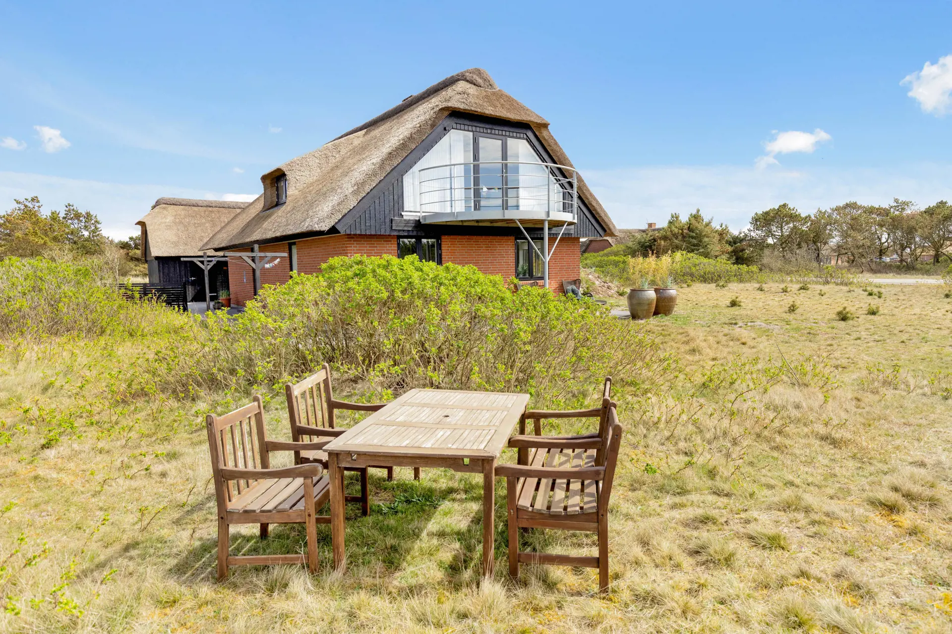 Nur 300 Meter vom weißen Badestrand Blåvands entfernt, erwartet euch dieses schöne reetgedeckte Haus, welches in 2020 renoviert und modernisiert wurde. Das gemütliche Dekor strahlt eine klassische Ferienhausatmosphäre aus - unter anderem mit Holzofen, Sauna, abgeschirmter Terrasse und Balkon mit Blick auf die Umgebung. Hier könnt ihr mit bis zu 8 Personen Urlaub machen, und die Hunde sind ebenfalls willkommen. Euch erwartet hier ab 2021 ein Außenwhirlpool und eine tolle, überdachte Terrasse.