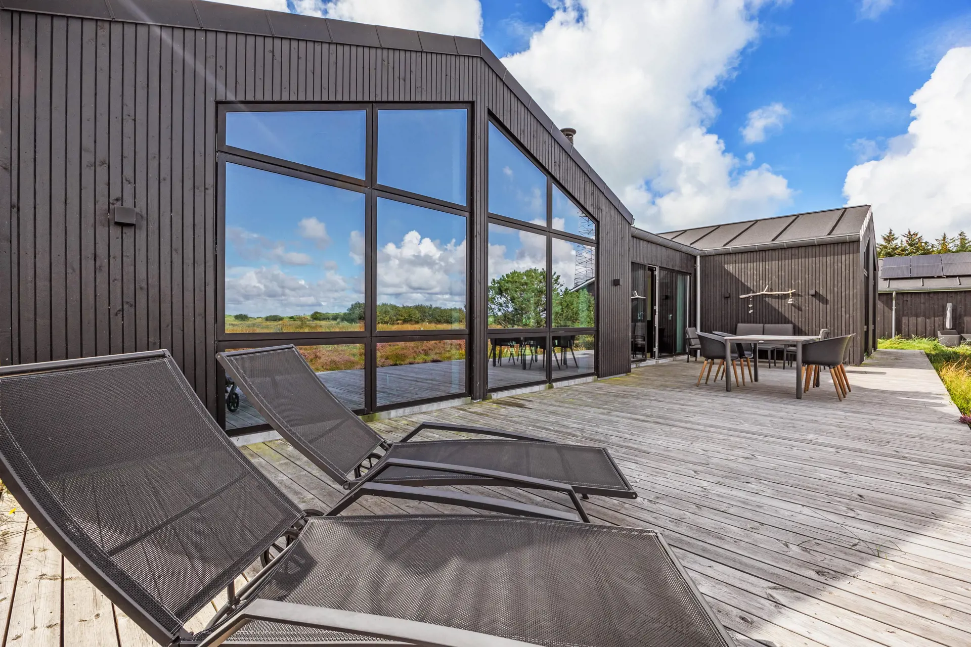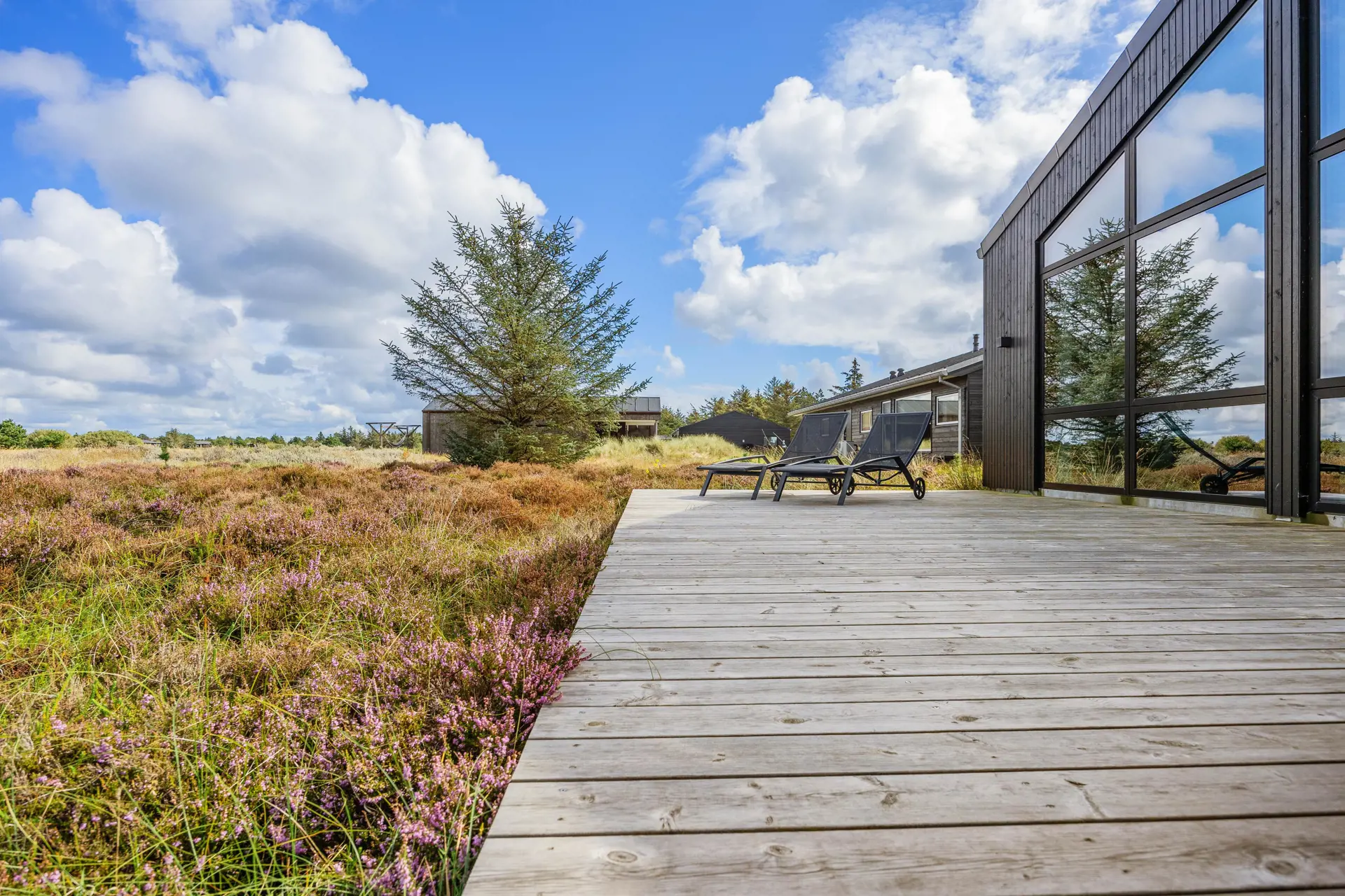 Inmitten eines großen Heideareals und fast am westlichsten Punkt Dänemarks, liegt dieses moderne und richtig schöne 5-Sterne-Luxushaus mit vielen tollen Extras. Gerade, wenn ihr euch im Urlaub etwas gönnen und Gutes tun wollt, findet ihr hier die perfekten Rahmenbedingungen. Ein großer Außenwhirlpool, eine Infrarotsauna und eine Außendusche sowie der Aktivitätsbereich sind hier ganz klar die absoluten Highlights. Mit bis zu 8 Personen könnt ihr euch auf einen schönen und entspannenden Aufenthalt in Blåvand freuen. Beim Bau dieses Ferienhauses würde Rücksicht auf die Heidelandschaft genommen. Zwischen dem Haus und den zugehörigen Parkplätzen liegt eine kleine Düne, die es zu überwinden gilt - wie um der faszinierende Lage ein Ausrufezeichen hinzuzufügen.