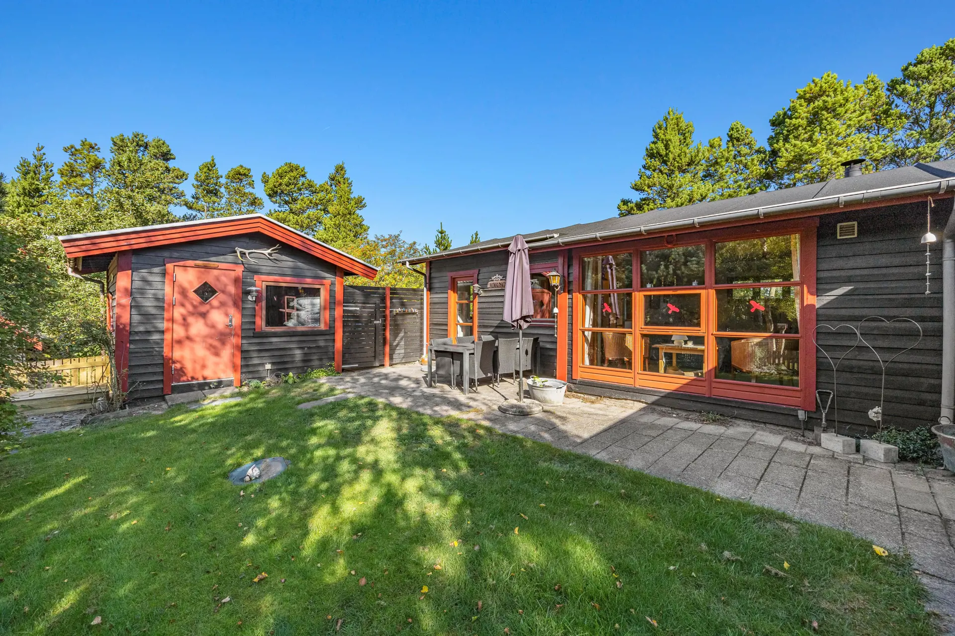 Das 2331 m² große Grundstück am Hedetoftvej 58 ist von Bäumen umgeben, die an windigen Tagen Schutz und an sonnigen Tagen Schatten bieten. Es gibt also keine Ausrede, sich nicht auf eine der beiden Terrassen zu begeben, um sich zu entspannen. Das Naturgrundstück bietet viel Platz zum Spielen für Hunde und Kinder, und die Kinder können auch schaukeln und Sandburgen im Sandkasten bauen.