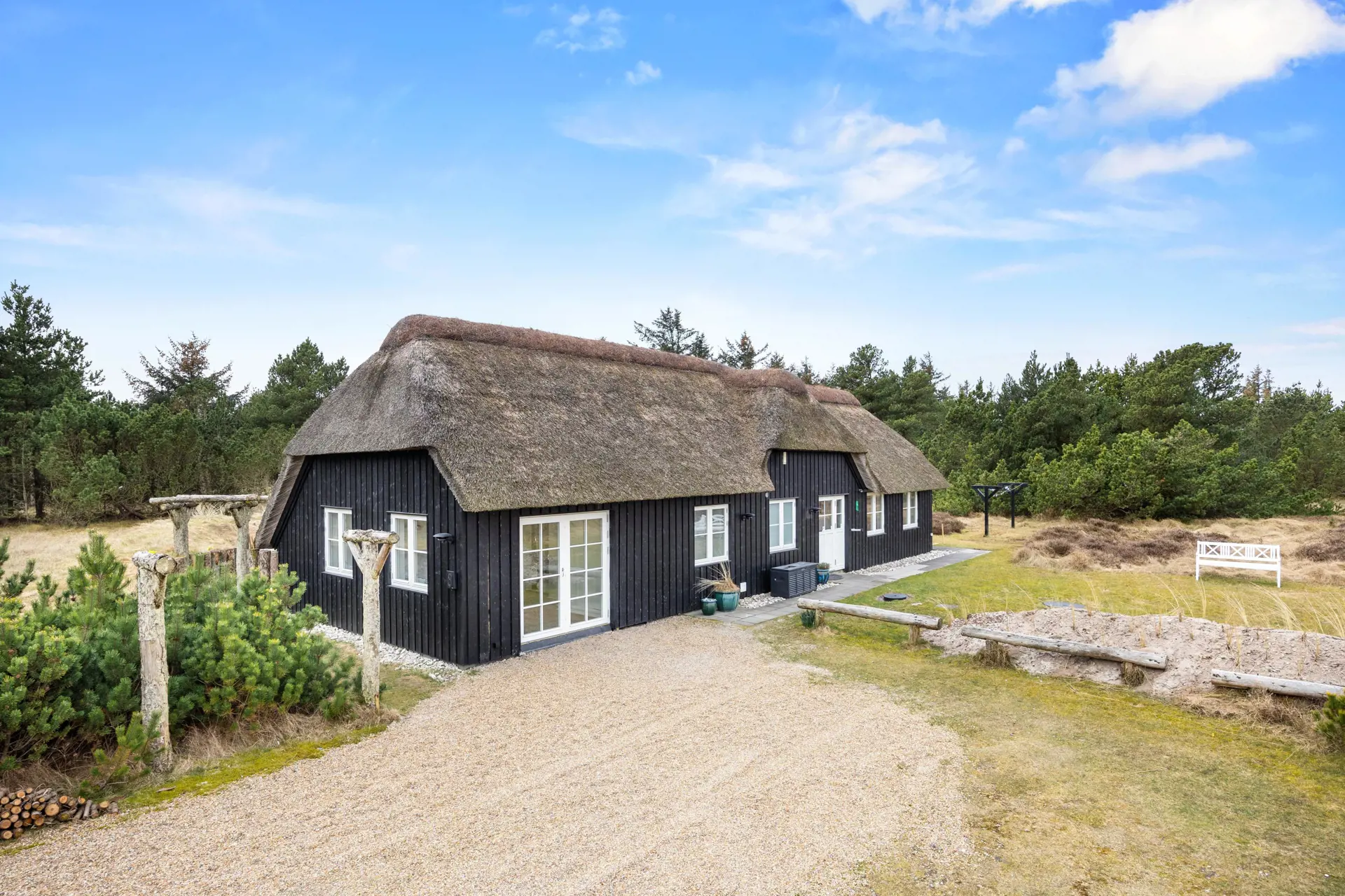 Ein großzügiges Naturgrundstück umgibt das Ferienhaus, auf dem du mit den zur Verfügung stehenden Gartenmöbeln und einem Grill unvergessliche Momente im Freien erleben kannst.