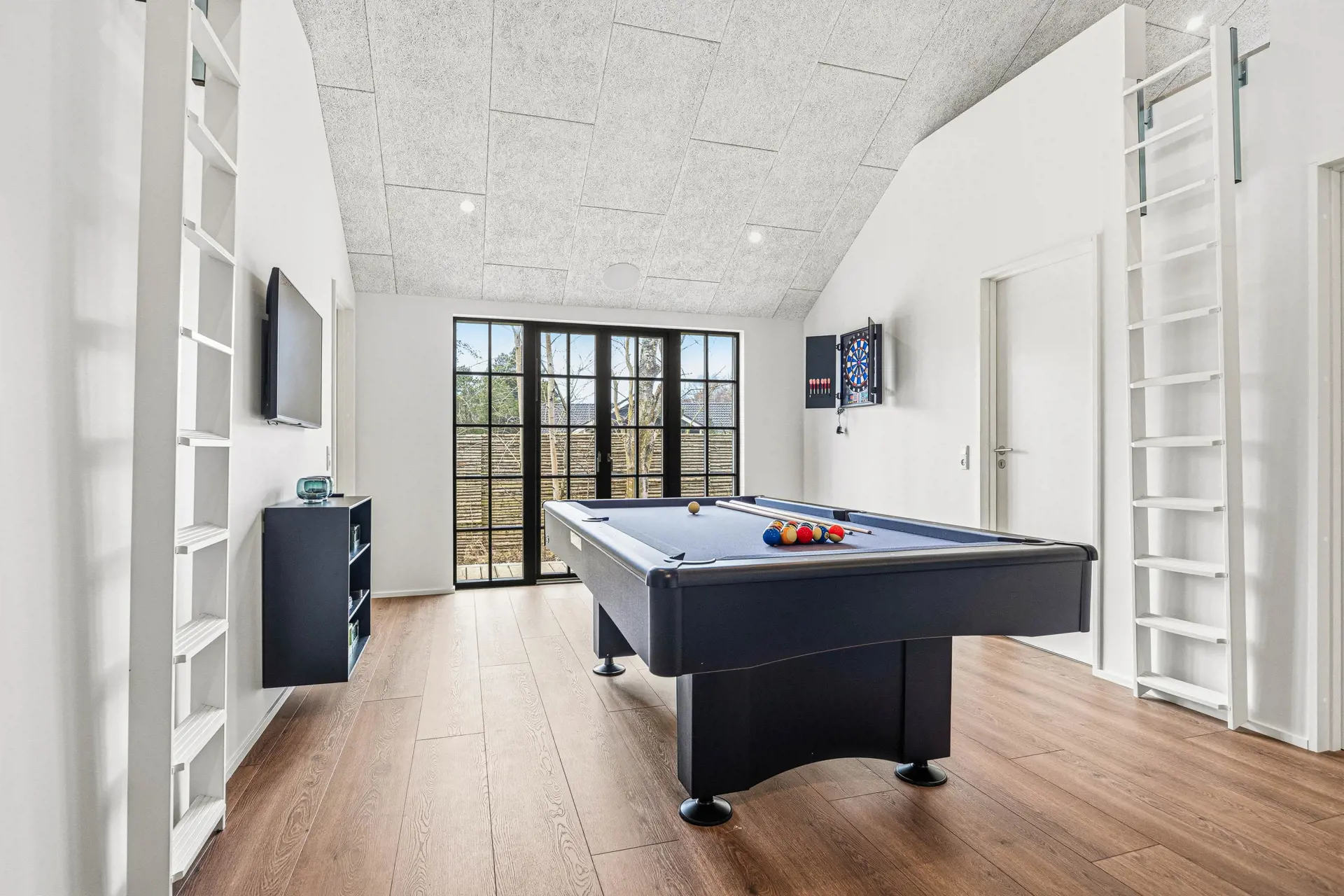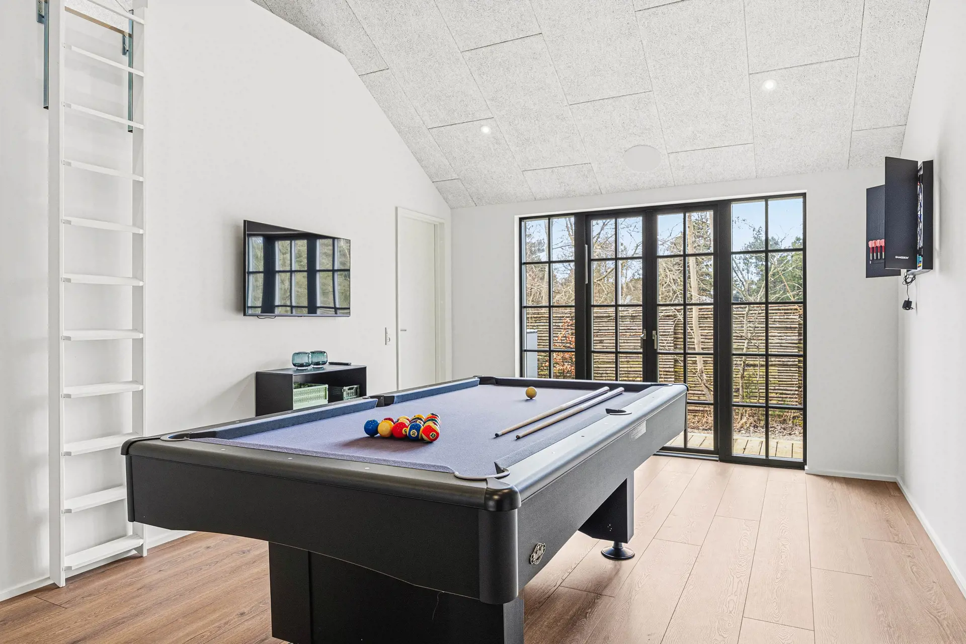 Das Highlight dieses Ferienhauses ist zweifellos der 18 m2 große Swimmingpool, der euch zu jeder Jahreszeit einen Ort der Erholung und des Vergnügens bietet. Aktive Gäste können sich beim Poolbillard oder Tischtennis messen, während andere die Sonne auf der offenen oder abgeschirmten Terrasse genießen. Ein Aussenwhirlpool sowie eine Aussensauna und eine Aussendusche bieten zusätzliche Möglichkeiten zur Entspannung und zum Wohlfühlen. Die Außendusche kann vom 1. April bis zum 31. Oktober genutzt werden.