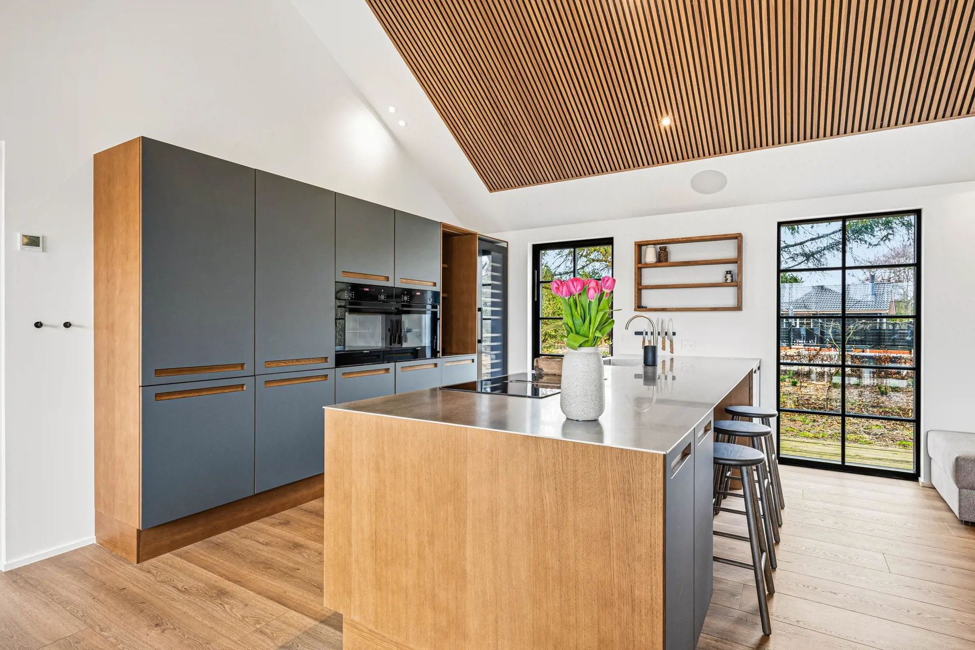 Dank der Luft-Wasser-Wärmepumpe wird der Energieverbrauch des Hauses effizient reguliert.