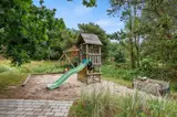 Die offene und überdachte Terrasse lädt zu gemütlichen Abenden und Grillabenden mit Familie und Freunden ein, und die Gartenmöbel laden an mehreren Stellen rund um das Haus zum Entspannen ein, während die Kinder im Sandkasten oder auf der Schaukel spielen. Erlebe eine gute Auszeit vom Alltag und schaffe nette Erinnerungen in der malerischen Umgebung des Hauses mit Sedum auf dem Dach.