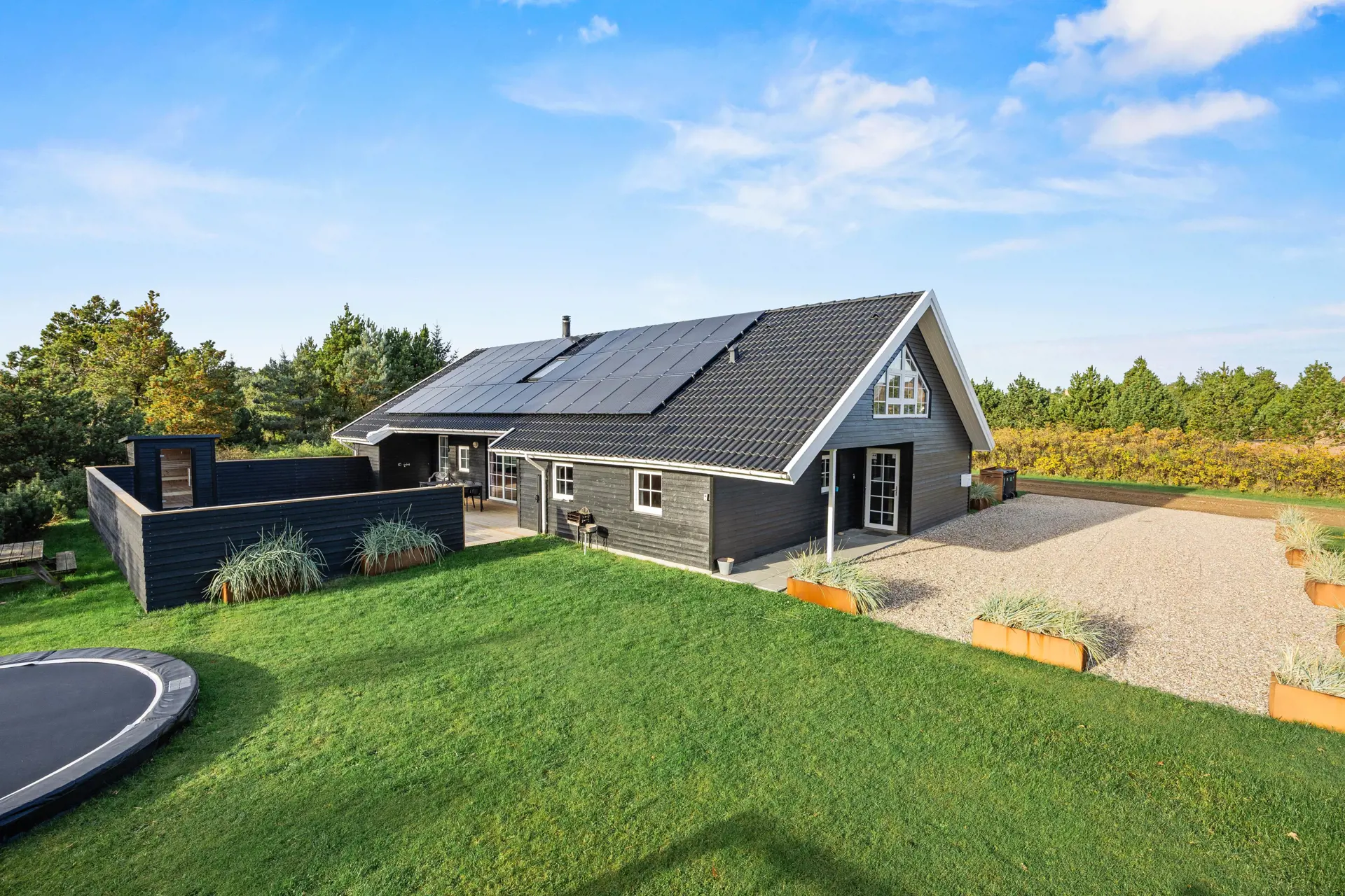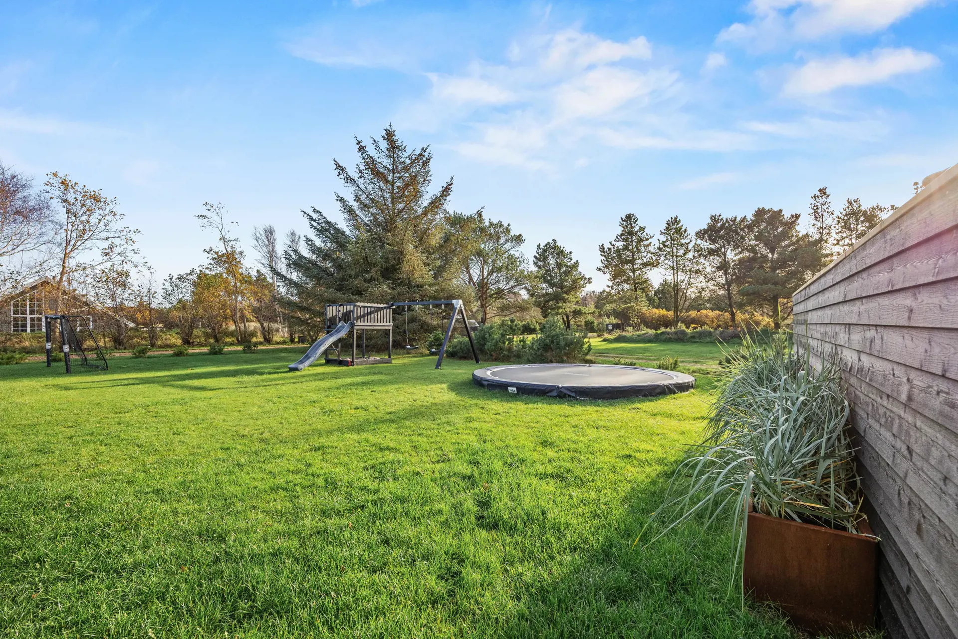 Kinder werden auf dem Grundstück mit seinem Trampolin, der Schaukel und dem Sandkasten stundenlang Spaß haben, und die verschiedenen Terrassen, von denen eine überdacht und geschlossene ist, bieten euch perfekte Rückzugsmöglichkeiten und die Chance, gesellige Grillabende mit den bereitstehenden Gartenmöbeln zu genießen.