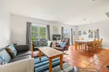 Das schöne rot-weiß gestrichene Holzhaus auf zwei Etagen liegt nur ca. 800 Meter vom Strand und ca. 100 Meter von Einkaufsmöglichkeiten entfernt, in der Nähe eines Baches mit kleinen Brücken – daher wird die Gegend auch „Klein-Venedig” genannt. Das Ferienhaus in Blåvand bietet alles, was 6 Personen für einen gemütlichen Urlaub brauchen, und auch der beste Freund des Menschen kann mitkommen, denn im Haus dürfen Sie 1 Hund mitbringen.