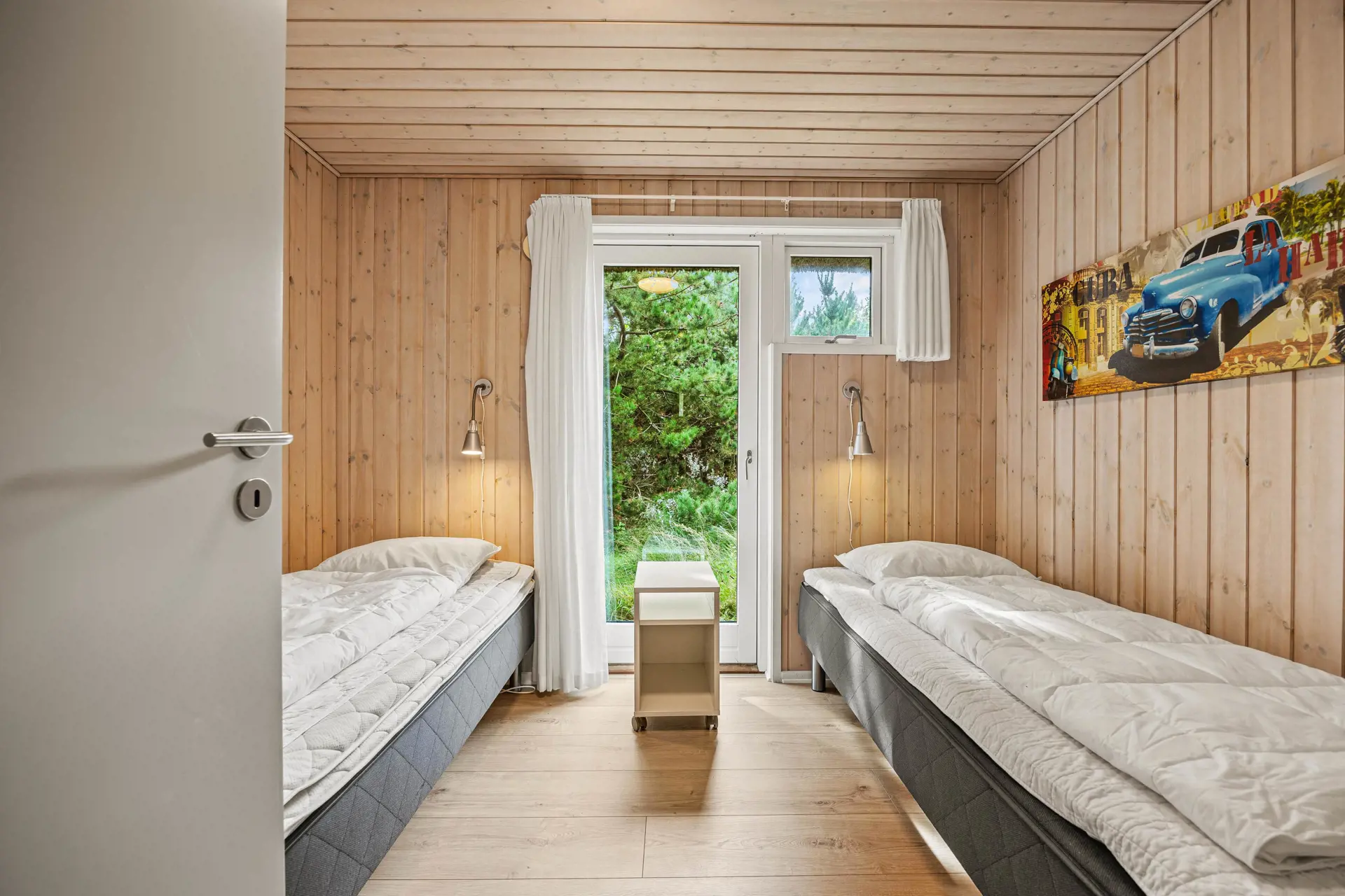 Die vier einfach eingerichteten Schlafzimmer sind mit ihren zwei Doppelbetten und vier Einzelbetten ideal für Familien und Gruppen und sorgen für einen angenehmen Schlaf. Außerdem gibt es im Hauswirtschaftsraum eine Waschmaschine und einen Wäschetrockner, damit ihr euch in eurem Ferienhaus in Blåvand ganz wie zu Hause fühlen können.