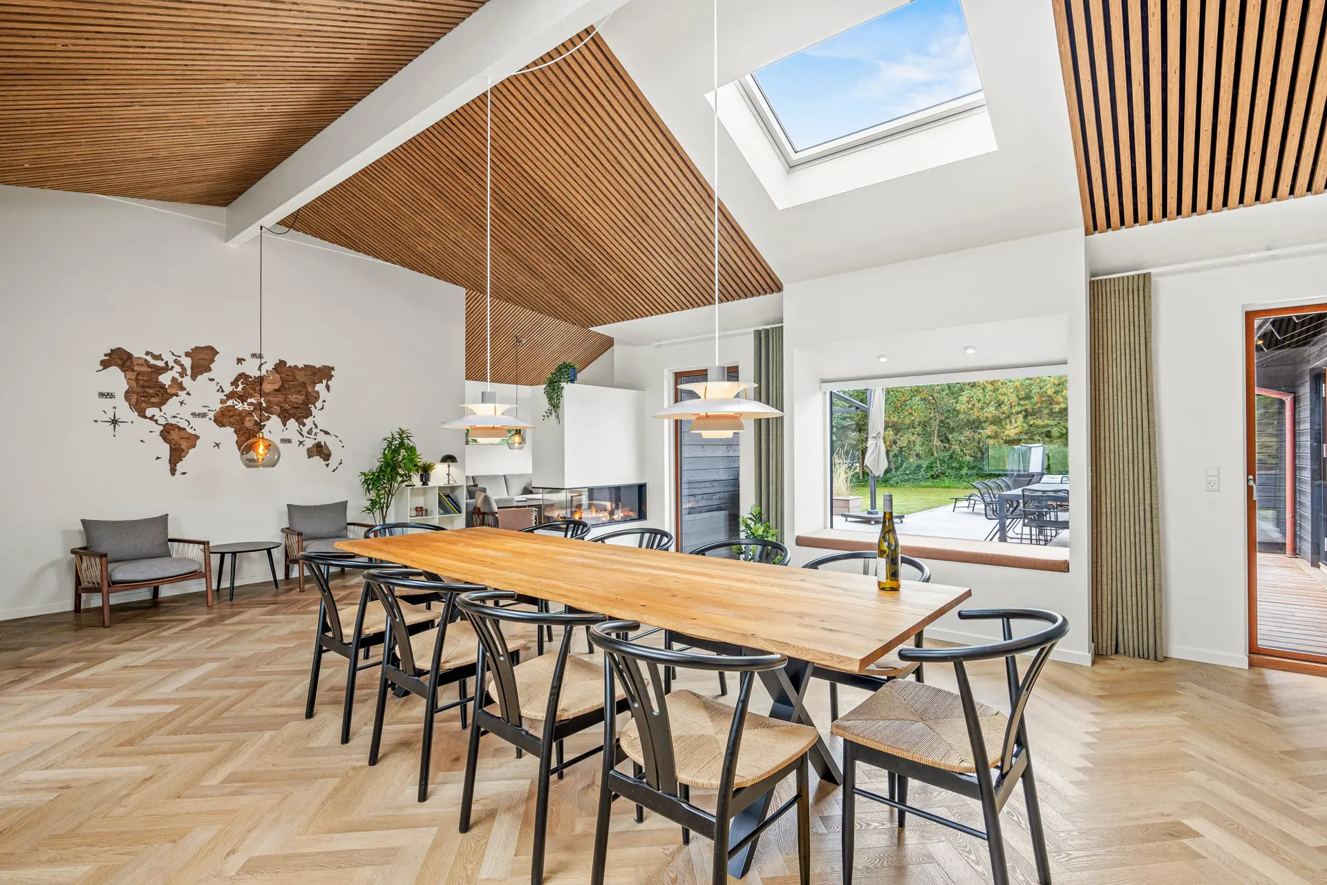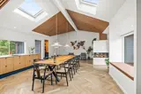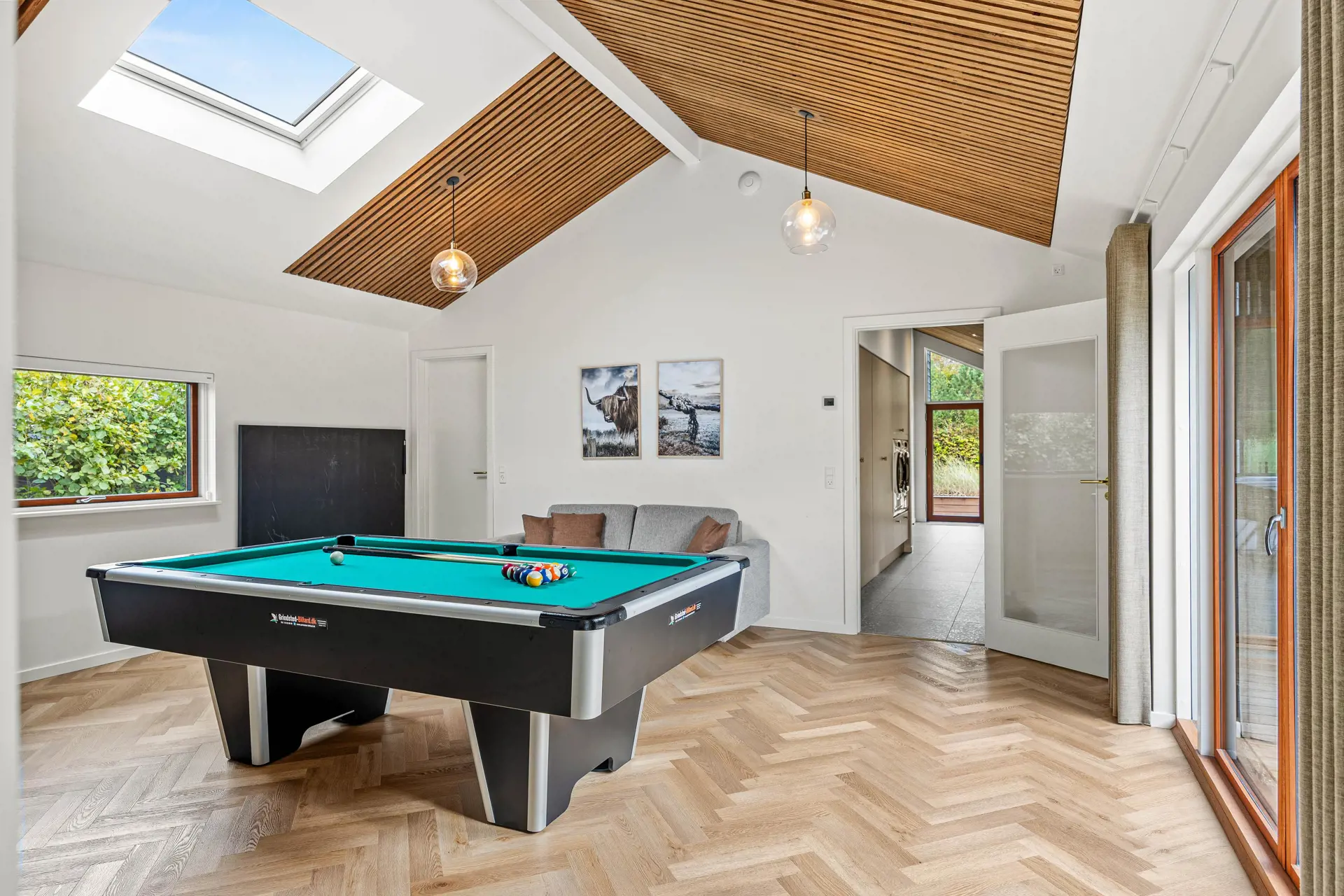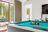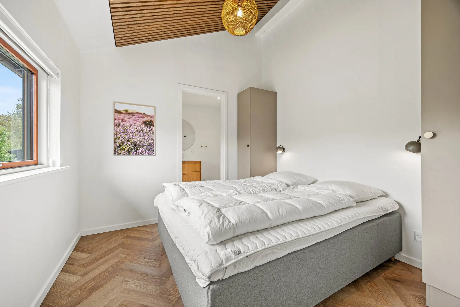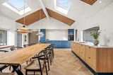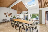 Das Ferienhaus ist mit einem Gespür für Ästhetik und Funktionalität eingerichtet. Die 5 hellen und geräumigen Schlafzimmer bieten Platz für 10 Personen, und dank der 5 Badezimmer gibt es morgens keine Warteschlangen. Der große Wohnbereich kombiniert Küche mit Geschirrspüler, Essbereich und Wohnzimmer in einem – ideal für gemeinsame Aktivitäten. Während einer das Abendessen zubereitet, können andere am Esstisch Spiele spielen oder sich mit einem guten Buch auf das Sofa kuscheln. Die großen Fenster im Wohnzimmer laden die Natur ein, sodass man auch an einem regnerischen Tag die Umgebung genießen kann.