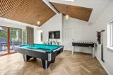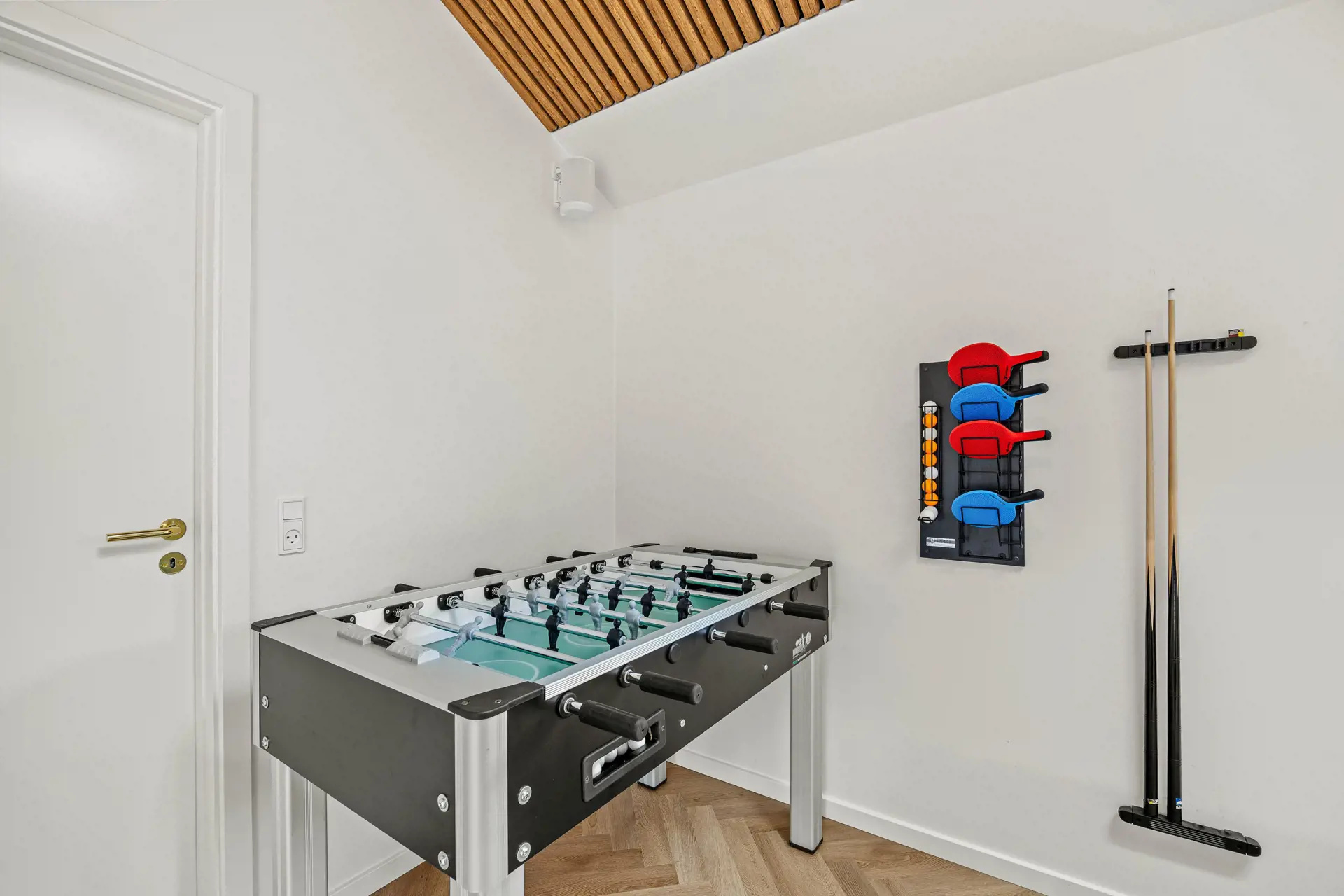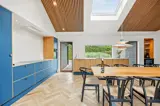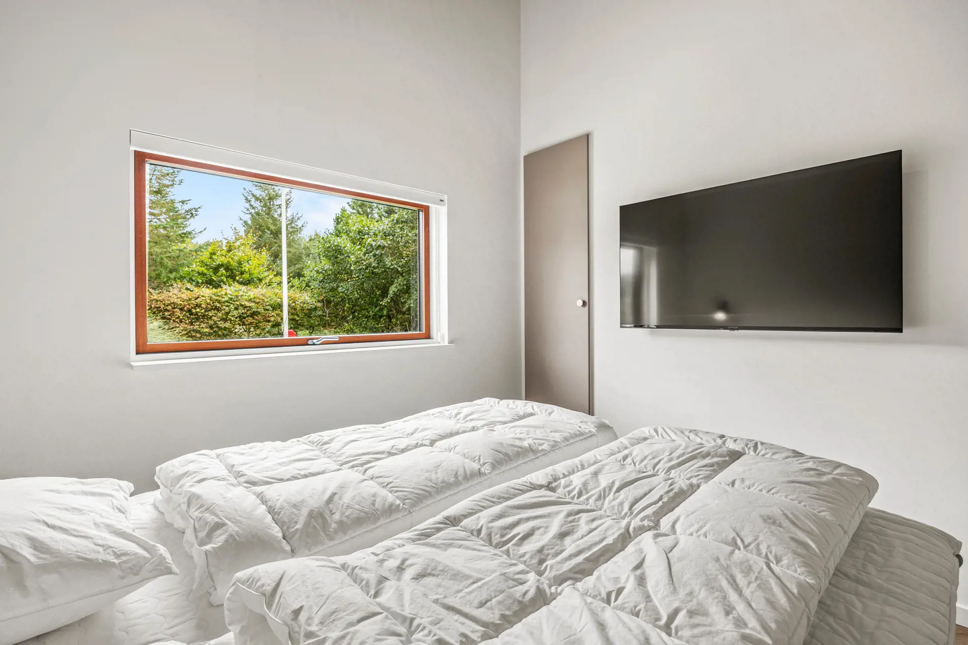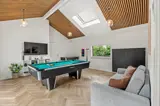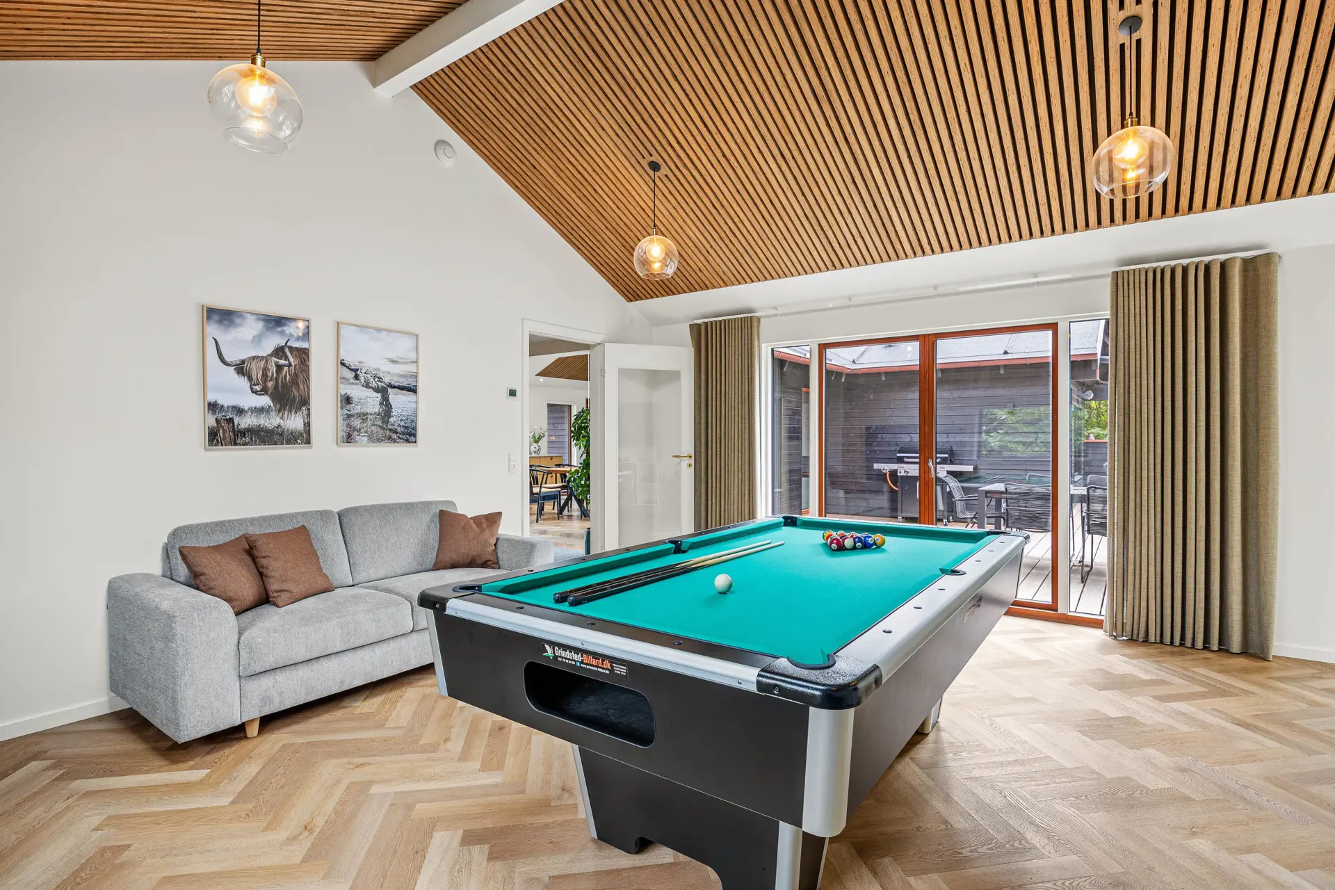 Das Ferienhaus ist mit einem Gespür für Ästhetik und Funktionalität eingerichtet. Die 5 hellen und geräumigen Schlafzimmer bieten Platz für 10 Personen, und dank der 5 Badezimmer gibt es morgens keine Warteschlangen. Der große Wohnbereich kombiniert Küche mit Geschirrspüler, Essbereich und Wohnzimmer in einem – ideal für gemeinsame Aktivitäten. Während einer das Abendessen zubereitet, können andere am Esstisch Spiele spielen oder sich mit einem guten Buch auf das Sofa kuscheln. Die großen Fenster im Wohnzimmer laden die Natur ein, sodass man auch an einem regnerischen Tag die Umgebung genießen kann.
