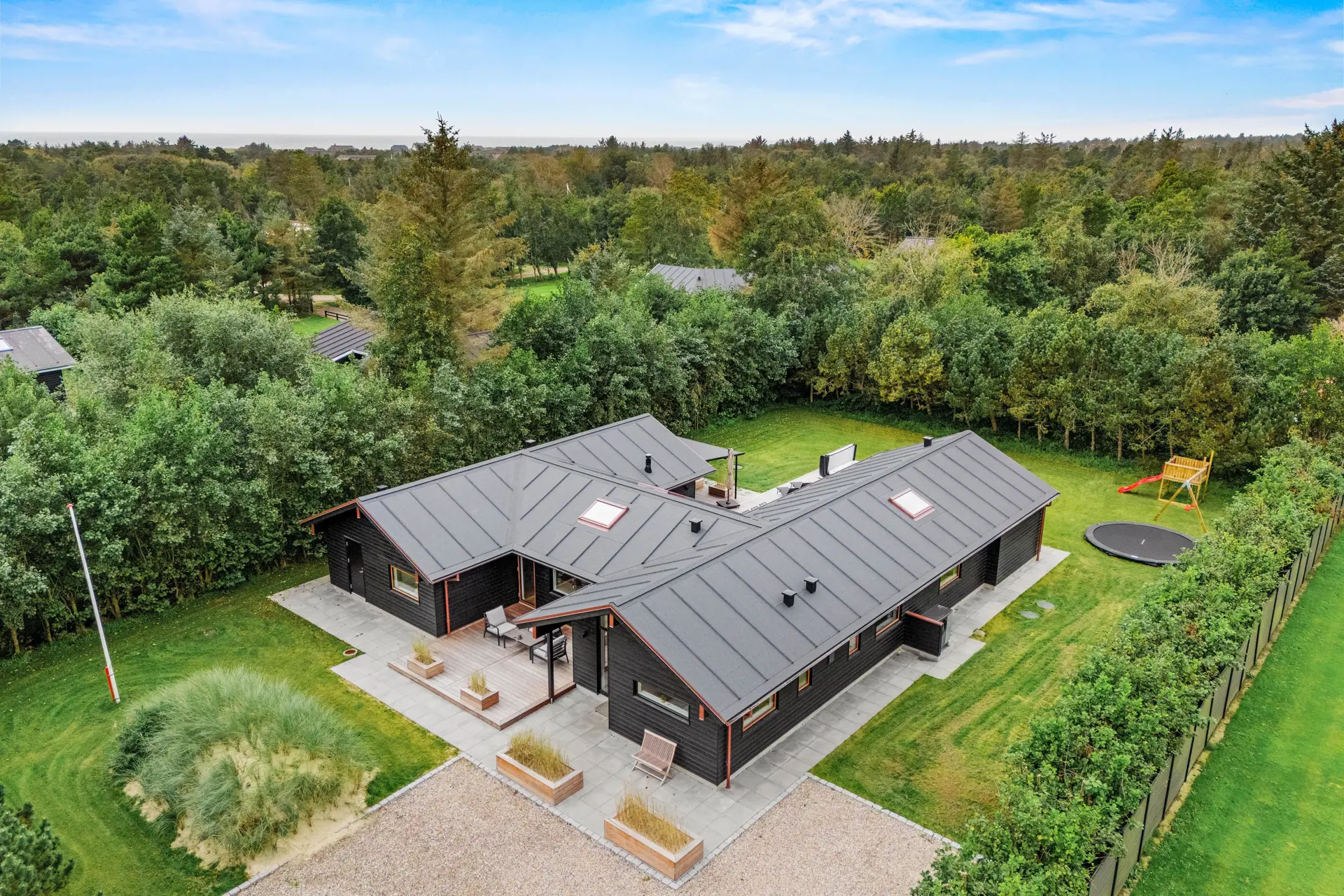 Lyngsletten 31 bietet ein ungestörtes Grundstück, auf dem ihr das Leben im Freien in Ruhe und Frieden genießen könnt – egal, ob die Kinder auf dem Rasen spielen, der Hund herumrennt oder die Erwachsenen ihren Morgenkaffee auf der Terrasse genießen, hier ist Platz für die ganze Familie. Hier findet ihr Ruhe und Frieden, sind aber dennoch nah an allem, was in Blåvand passiert.
