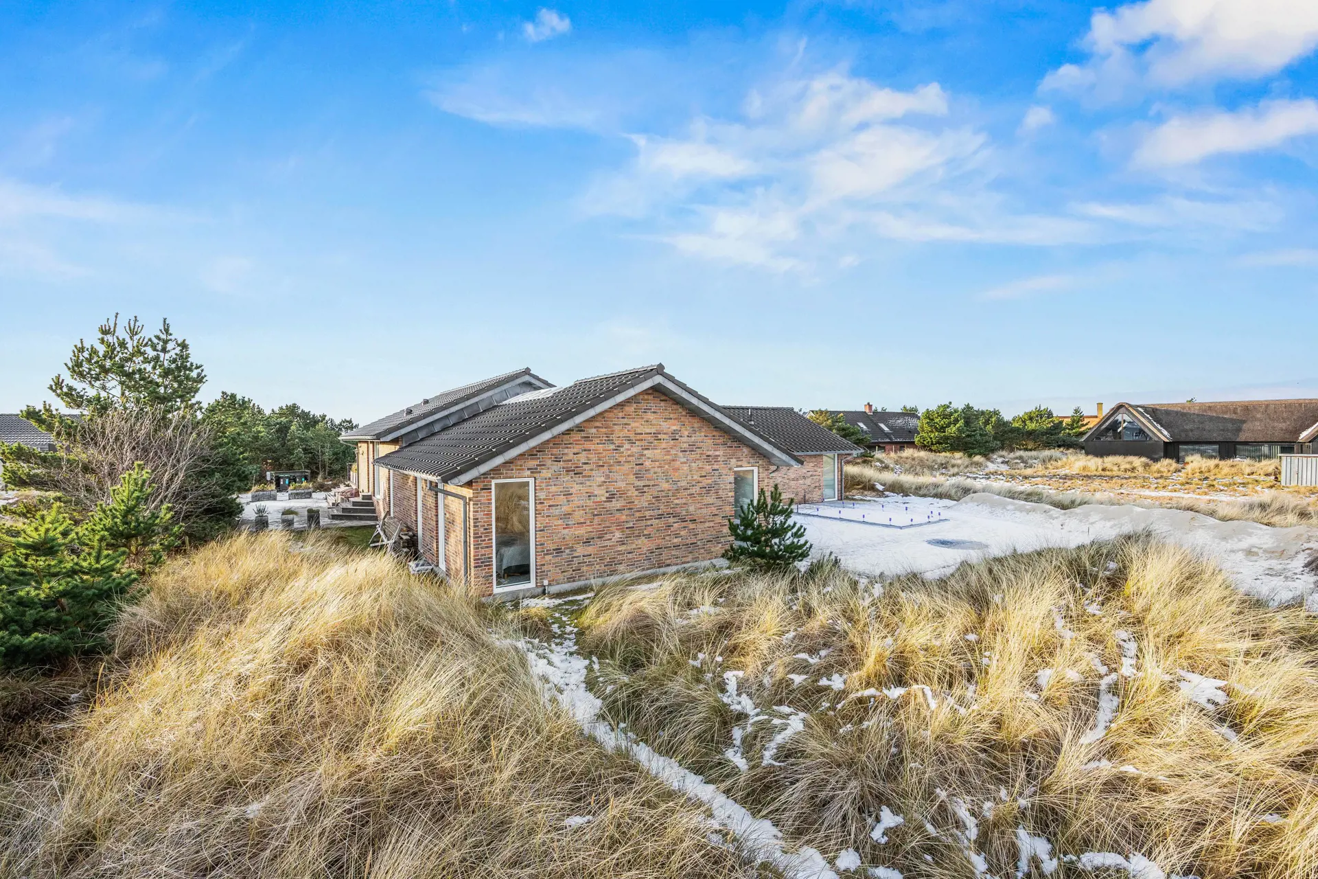 Das Ferienhaus überzeugt durch seine traumhafte Lage auf einem 1975 m² großen Naturgrundstück. Nur 360 Meter trennen dich von der feinen Sandküste, einem wahren Paradies für Strandliebhaber und Wassersportler. Für Kinder gibt es im Garten Schaukel und Sandkasten, während du auf der offenen, abgeschirmten oder überdachten Terrasse entspannst und die frische Luft genießt.