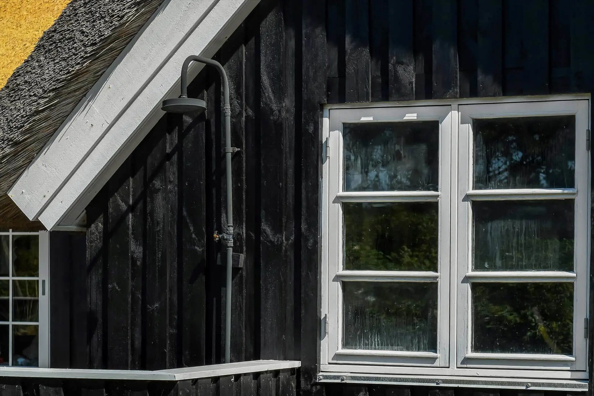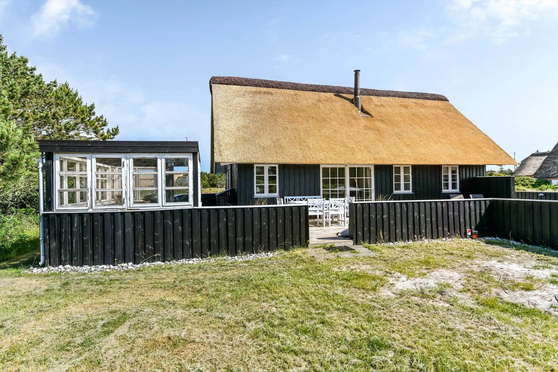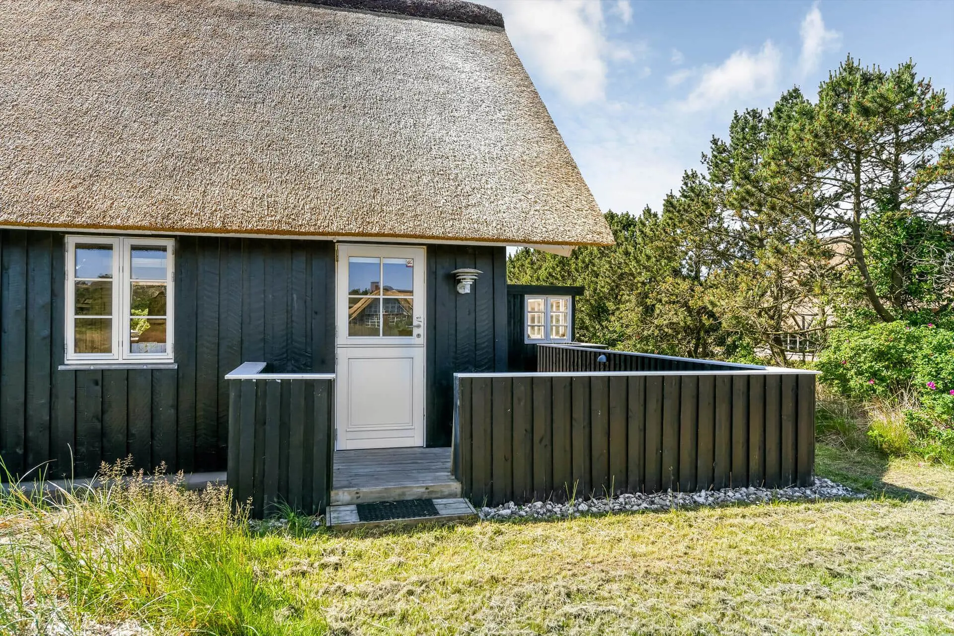 Die Holzterrasse dieses Reetdachhauses ist ein wunderbares Fleckchen, um die Sonne und den dänischen Sommer in vollen Zügen zu genießen. Die Terrasse schmiegt sich rund um das gesamte Haus, sodass Sie zu jeder Tageszeit problemlos ein sonniges Plätzchen finden werden. Der ebenfalls vorhandene überdachte Terrassenbereich ist zu zwei Seiten hin abgeschirmt und eignet sich somit ganz hervorragend für gesellige Abende mit einem köstlichen Essen vom Grill. Auf dem schlicht angelegten Grundstück dürfen sich Ihre Kinder auf eine Schaukel freuen. Die abgeschirmte Außendusche spült Ihnen nach einem langen Tag am Strand den Sand und das Salz von der Haut. Bitte beachten Sie, dass das Wildnisbad auf der Terrasse nicht ein Bestandteil des Mietvertrages ist.