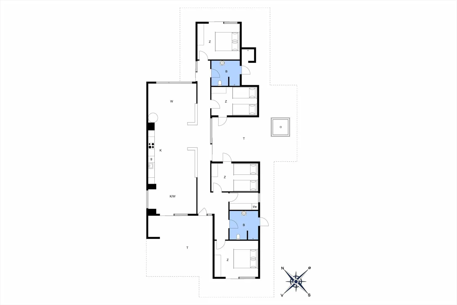 Das Ferienhaus liegt angenehm ungestört auf einem großen Grundstück, das sich wunderbar in die reizvolle Natur am Ende der kleinen Sackgasse einfügt. Wege und Pfade laden zu kurzen und langen Spaziergängen in der schönen Landschaft Blåvands ein. Nach rund einem Kilometer erreichen Sie den Ortskern des lebendigen Badeortes Blåvand, in dem das gesamte Jahr hindurch interessante Geschäfte und gute Lokalitäten zum Bummeln und Verweilen einladen. Ein wenig weiter entfernt freuen sich der schöne Blåvand Strand und die Nordsee auf Ihren Besuch. Zu den gut erreichbaren Sehenswürdigkeiten des Badeortes zählen der Leuchtturm Blåvandshuk Fyr, der Blåvand Zoo und das eindrucksvolle Tirpitz-Museum.