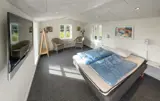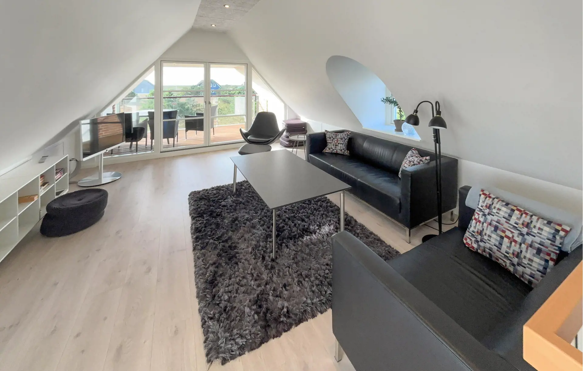Auf einem naturbelassenen Grundstück gelegen, verbindet dieses Haus stilvolles Wohnen mit unvergesslichen Naturerlebnissen. Der offene Wohn- und Essbereich ist geschmackvoll eingerichtet, mit bequemen Sitzmöbeln, Kaminofen und großem Esstisch – ideal für gemeinsame Mahlzeiten oder entspannte Abende. Kochen Sie in der modernen Küche, während der Duft frischer Speisen durch die Räume zieht. In der oberen Etage erwartet Sie ein weiterer Wohnraum mit Zugang zu einem Balkon, von dem Sie einen weiten Blick über die Dünenlandschaft und bis zum Meer genießen können. Entspannen Sie im Whirlpool oder in der Sauna und lassen Sie den Alltag hinter sich.