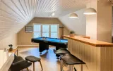Dieses großzügige Ferienhaus im Herzen von Blåvand und unweit der Nordseeküste bietet Ihnen die ideale Basis, um gemeinsam mit der Familie Erholung mit unterhaltsamen Aktivitäten zu kombinieren. Im sorgfältig renovierten Interieur erwartet Sie eine einladende Atmosphäre, die Sie beim gemütlichen Kochen, Speisen und Spielen mit Ihren Liebsten genießen können. Vergnügen Sie sich am Billardtisch, plaudern Sie am Kaminofen oder vertiefen Sie sich an Ihrem Lieblingsplatz in Ihre Urlaubslektüre.
