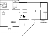 Die Schlafplätze verteilen sich auf 2 Schlafräume. 4 Schlafplätze in Doppelbetten. 3 Schlafplätze in Etagenbetten. 2 von diesen Schlafplätzen befinden sich im Gästehaus. Ferner steht ein Kinderbett zur Verfügung.