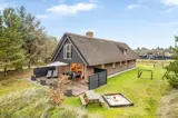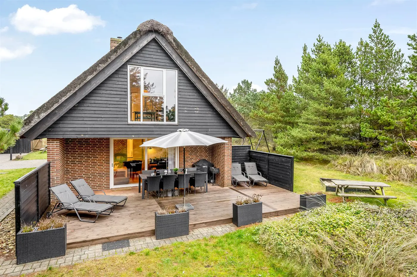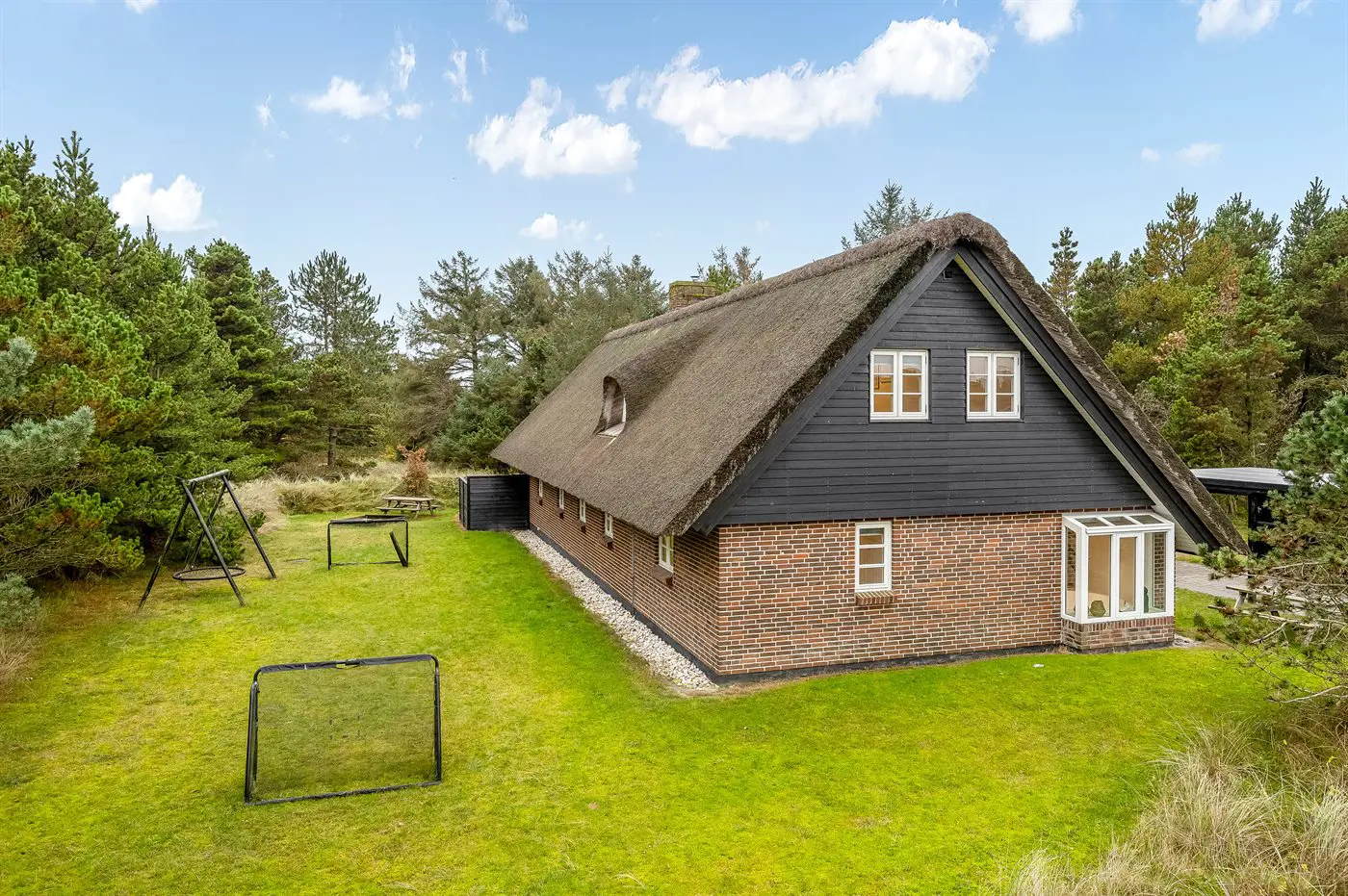 Im gemütlichen Solhaven liegt dieses reetgedeckte Ferienhaus in Blåvand mit einem herrlichen privaten Waldspielplatz.