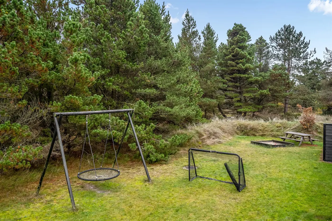 Bei diesem schönen Ferienhaus in Blåvand solltest du Freude an Aktivitäten im Freien mitbringen. Im kleinen Wald direkt neben dem Haus wurde ein spannender und leicht herausfordernder Hindernisparcours errichtet, an dem Gäste jeden Alters aktiv teilnehmen können. Ein großartiger Waldspielplatz, der Jung und Alt gleichermaßen fordert – die Benutzung erfolgt auf eigene Verantwortung.