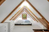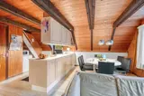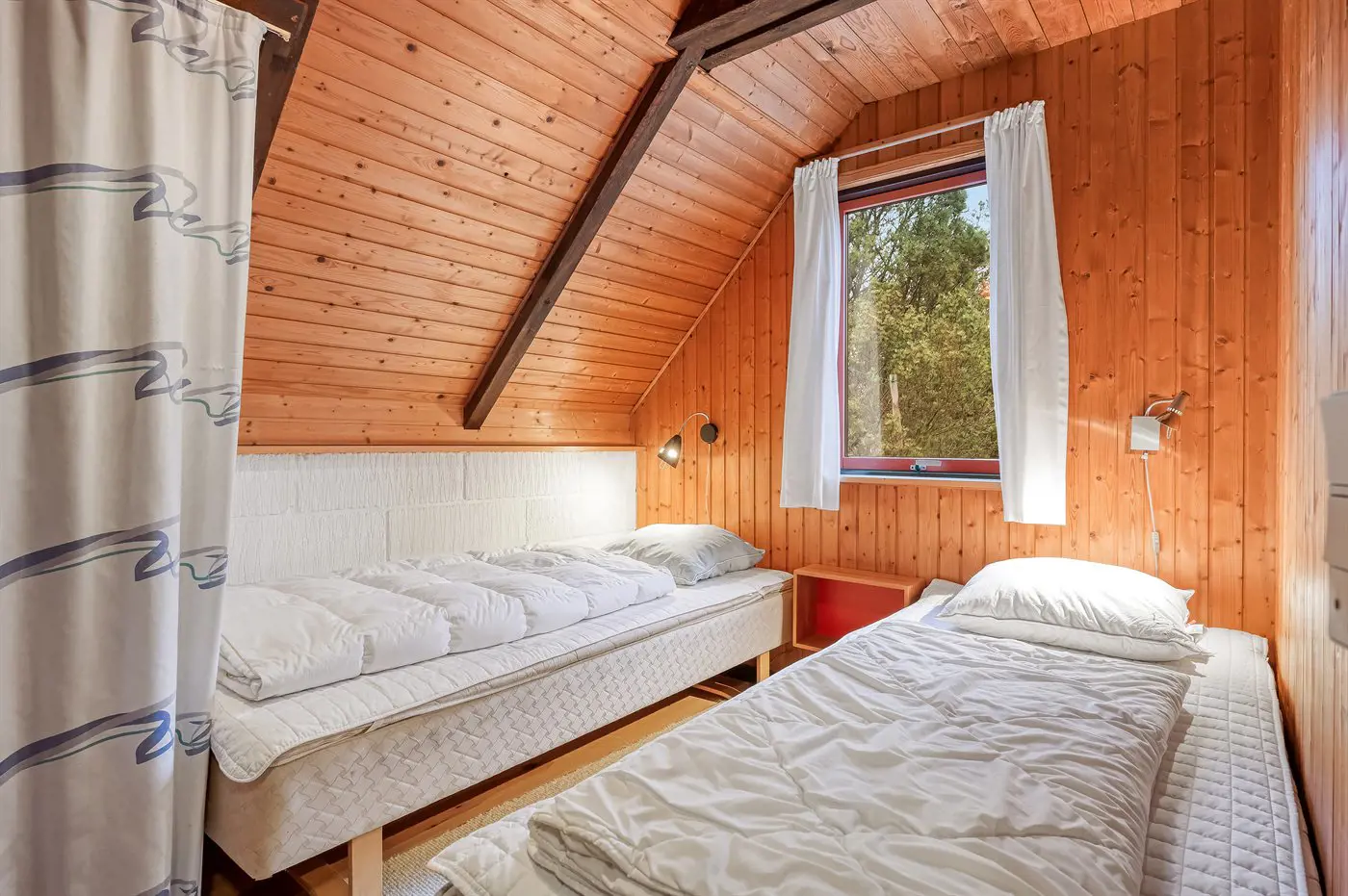 Die Schlafplätze verteilen sich auf 2 Schlafräume. 2 Schlafplätze in einem Doppelbett. 4 Schlafplätze in Einzelbetten. 2 von diesen Schlafplätzen befinden sich im offenen Obergeschoss.