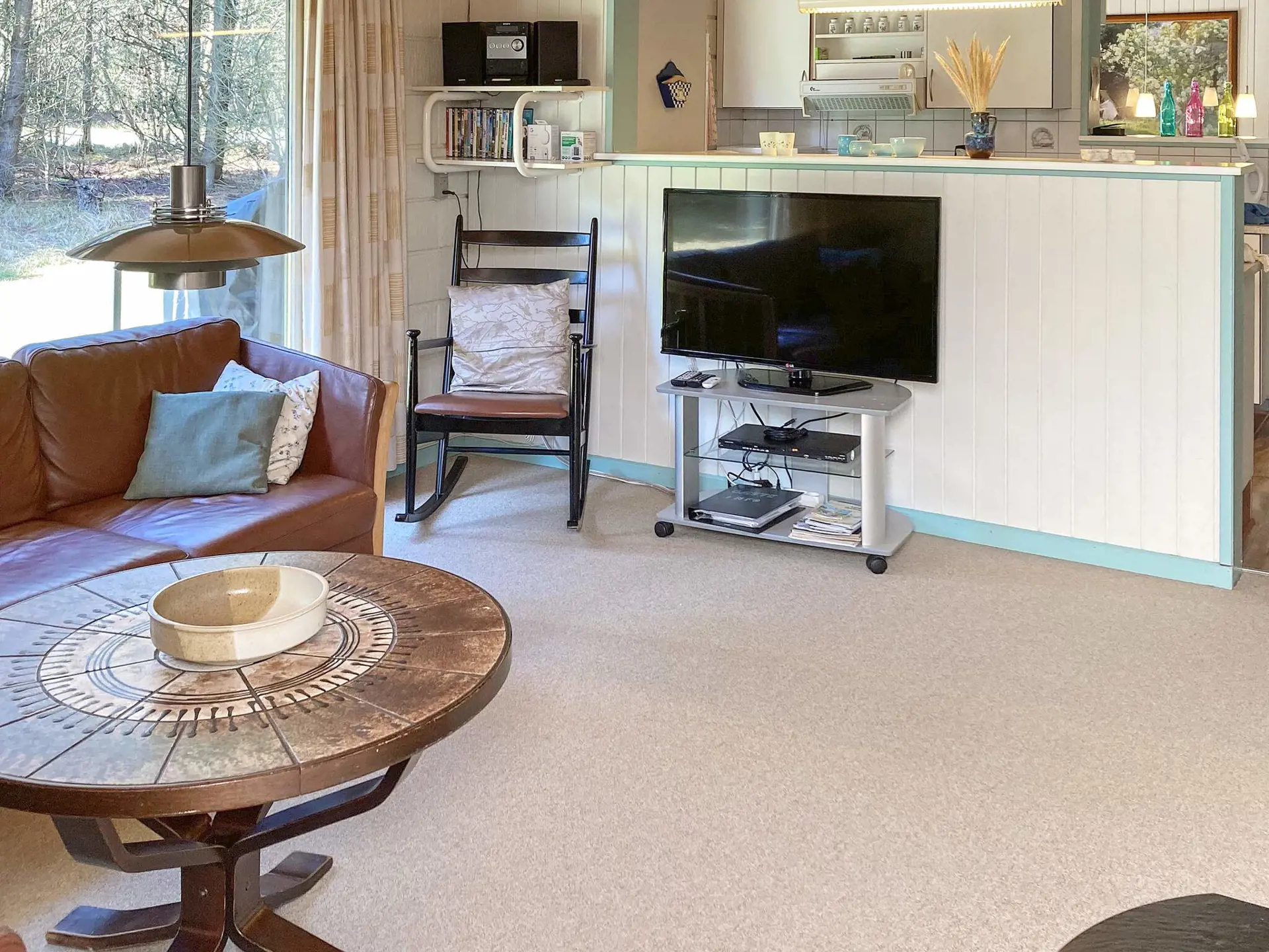 Wohnliches, familienfreundliches Ferienhaus mit schönem Wintergarten sowie Terrasse nach Süden und einem geschützten Rasengrundstück für Spiel und Spaß im Freien. Dazu stehen hier Fußballtor, Basketballkorb, Schaukel und Sandkasten bereit. Im Haus erwarten Sie neben vier Schlafzimmern ein gr. Küchen-/Wohnbereich m. Ess- und Sitzecke sowie Holzofen. Der Fernseher empfängt auch deutsche Sender. Das Badezimmer ist mit einem Whirlpool ausgestattet. Weiterhin gibt es ein Gäste-WC. Eines der Doppelbetten ist schmaler.