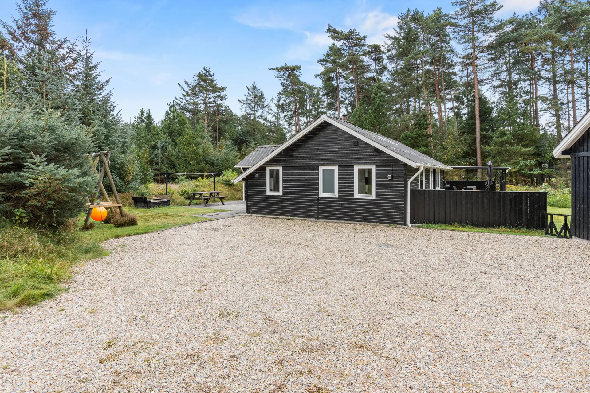 In der warmen Jahreszeit wird sich das Ferienleben überwiegend draussen abspielen. Die abgeschirmte teilweise überdache Terrasse ist mit guten und bequemen Gartenmöbeln ausgestattet und lädt zum Sonnenbaden und Grillen ein. Zum Vergnügen der jüngeren Gäste stehen Schaukeln und ein Sandkasten zum Buddeln bereit.