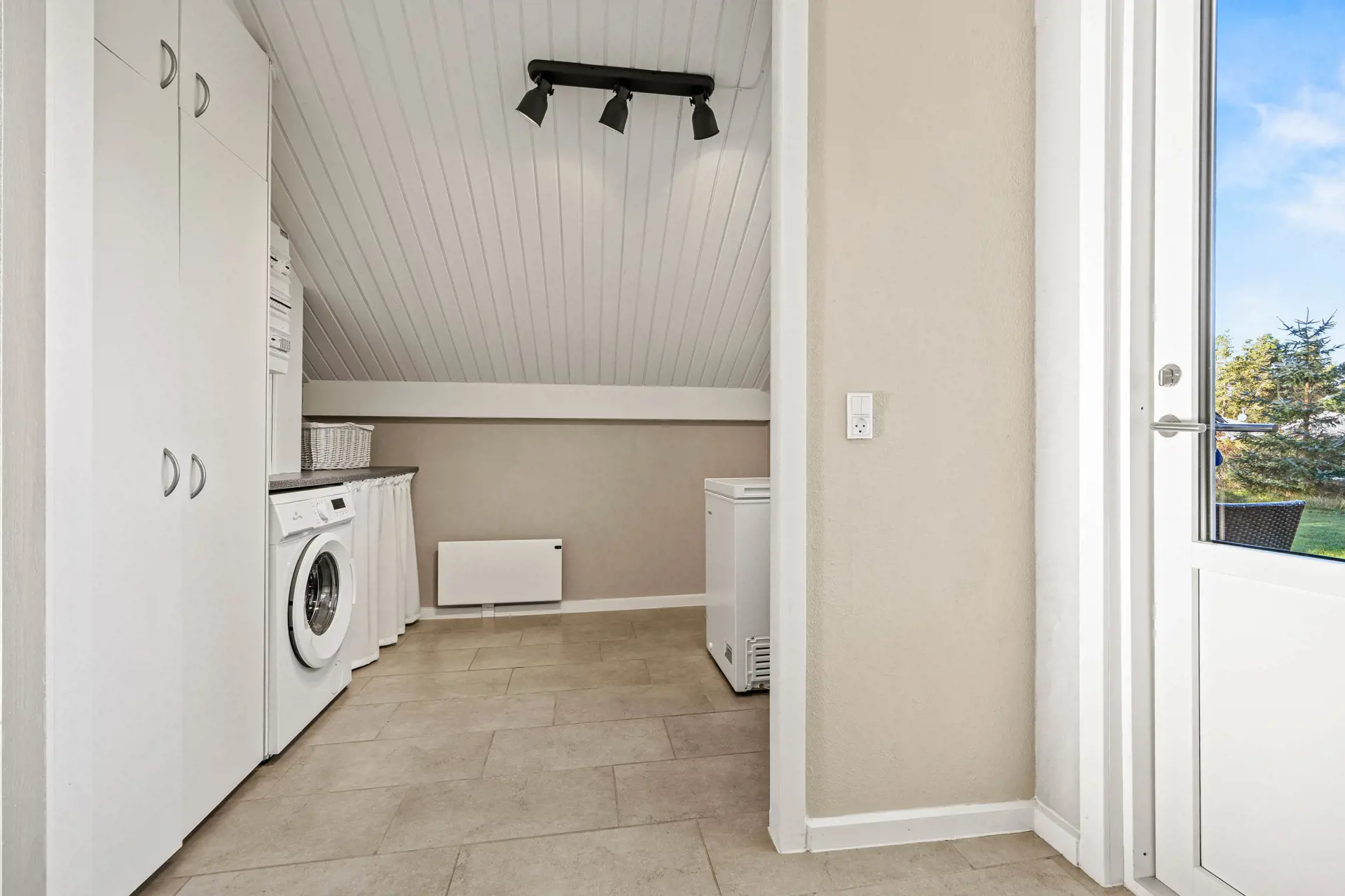 Das Badezimmer verfügt über Fußbodenheizung, und die Waschmaschine erleichtert das Waschen von Kleidung während des Aufenthalts. Draußen findet ihr sowohl überdachte als auch offene Terrassen sowie einen großen, eingezäunten Garten, der sicheren Raum für Kinder und Hunde bietet.