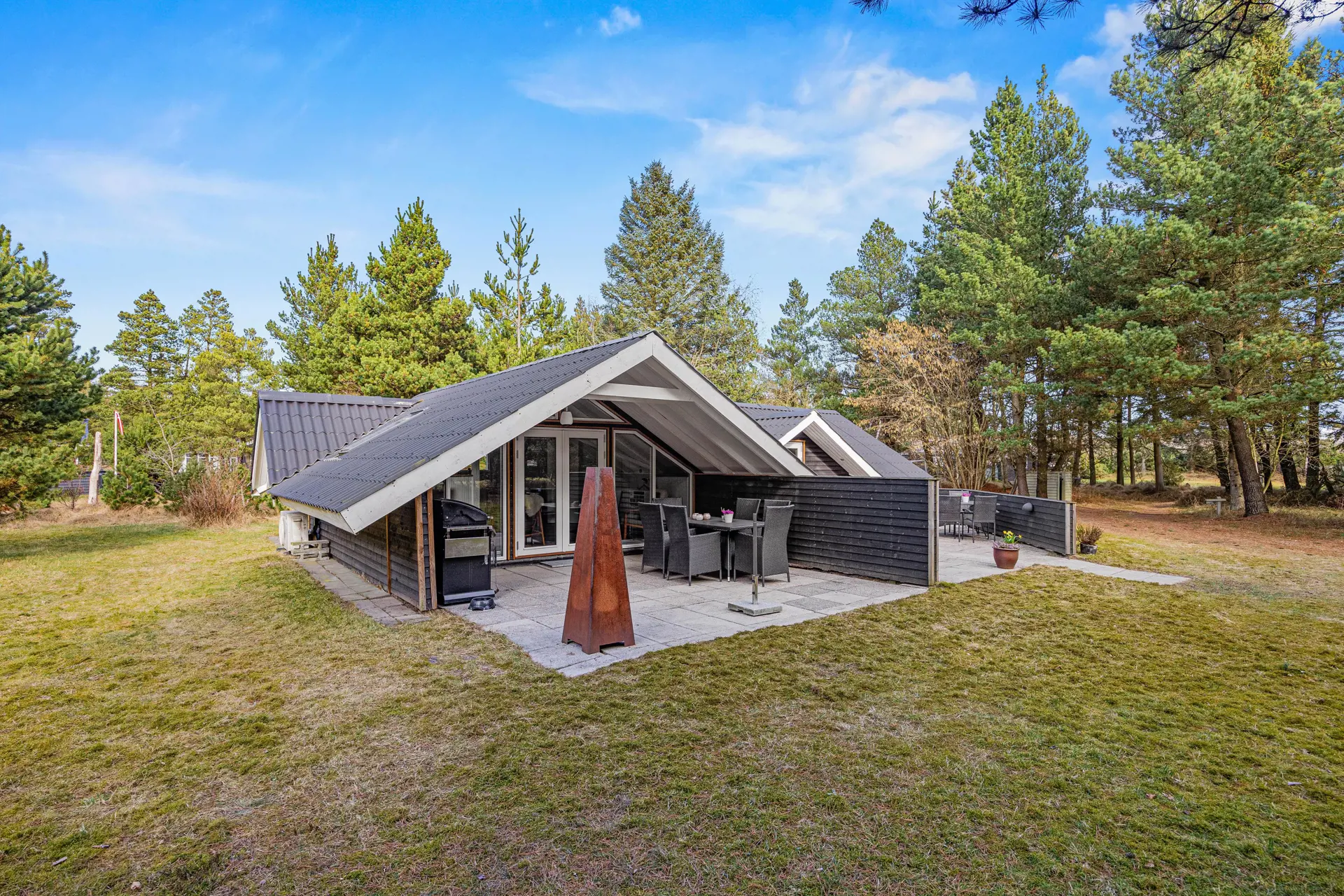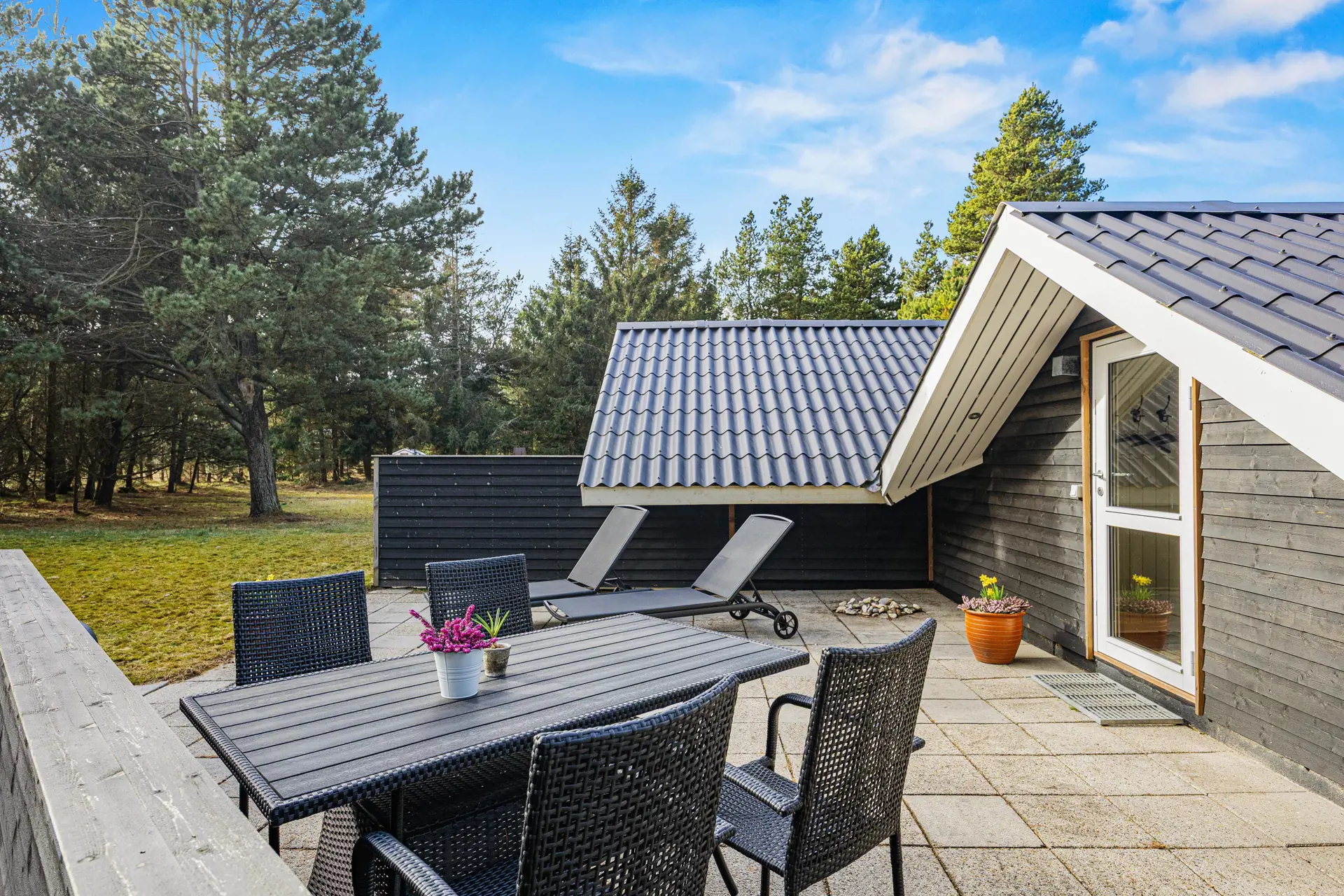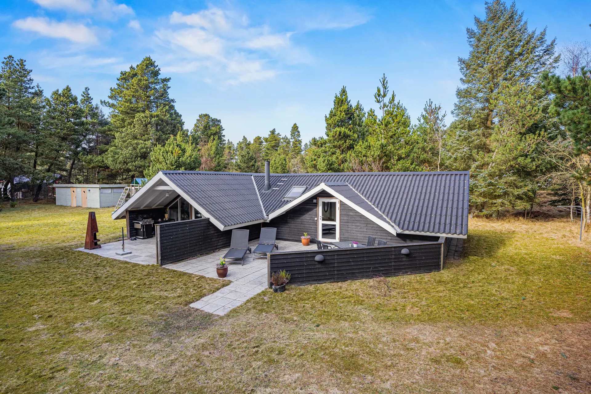Auf dem 2467 m2 großen Rasengrundstück hast du reichlich Platz, um den Tag im Freien zu verbringen. Du kannst es dir mit Gartenmöbeln gemütlich machen, auf der offenen Terrasse Sonne tanken oder unter der überdachten Terrasse länger draußen sitzen – auch wenn das Wetter mal wechselhaft ist. Ein Grill steht bereit, damit du den Abend ganz entspannt ausklingen lässt.