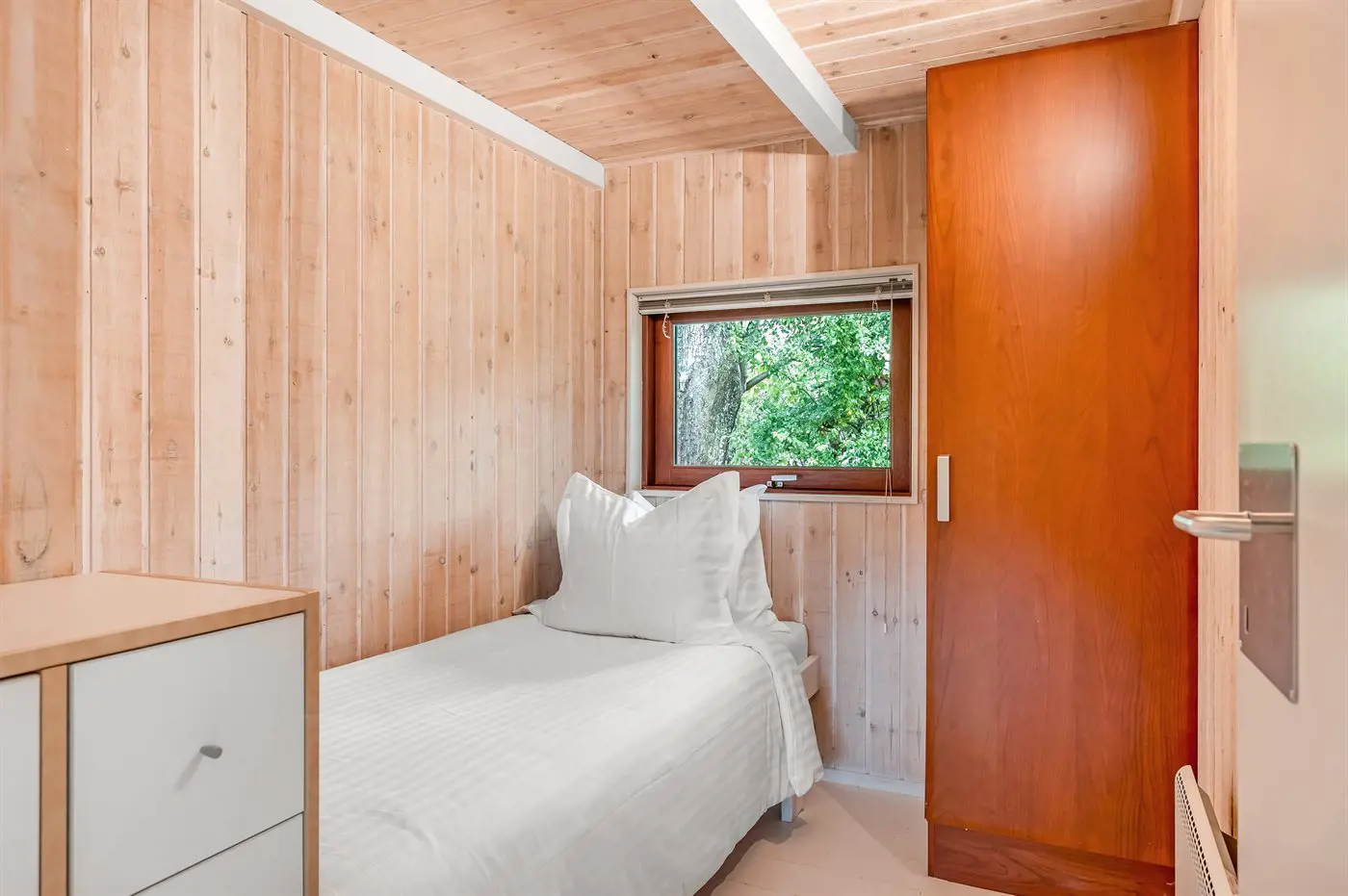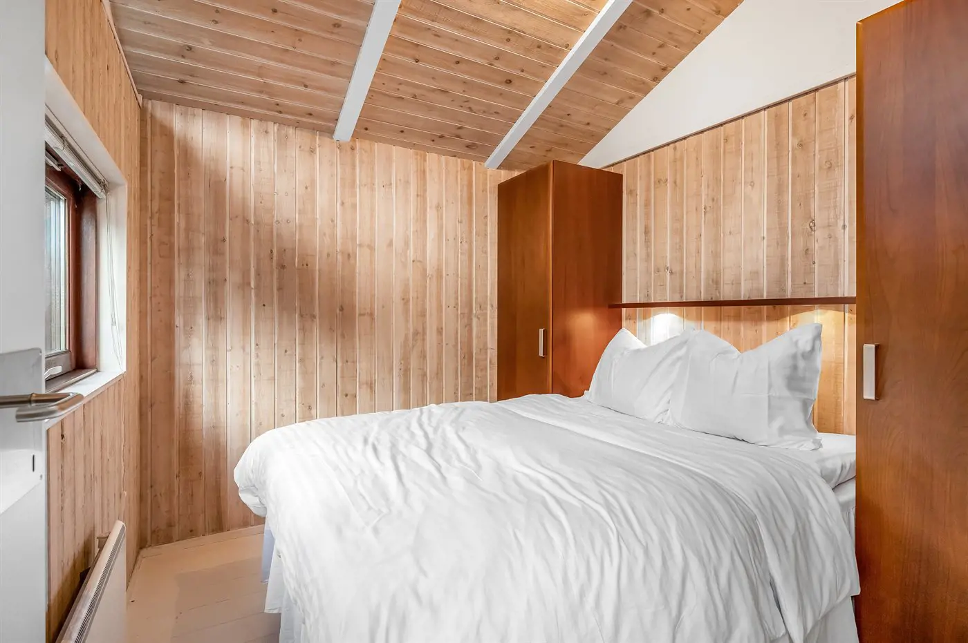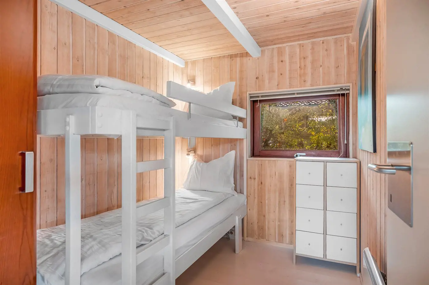 Die Schlafplätze verteilen sich auf 3 Schlafräume. 2 Schlafplätze in einem Doppelbett.1 Schlafplatz in einem Einzelbett. 2 Schlafplätze in einem Etagenbett.