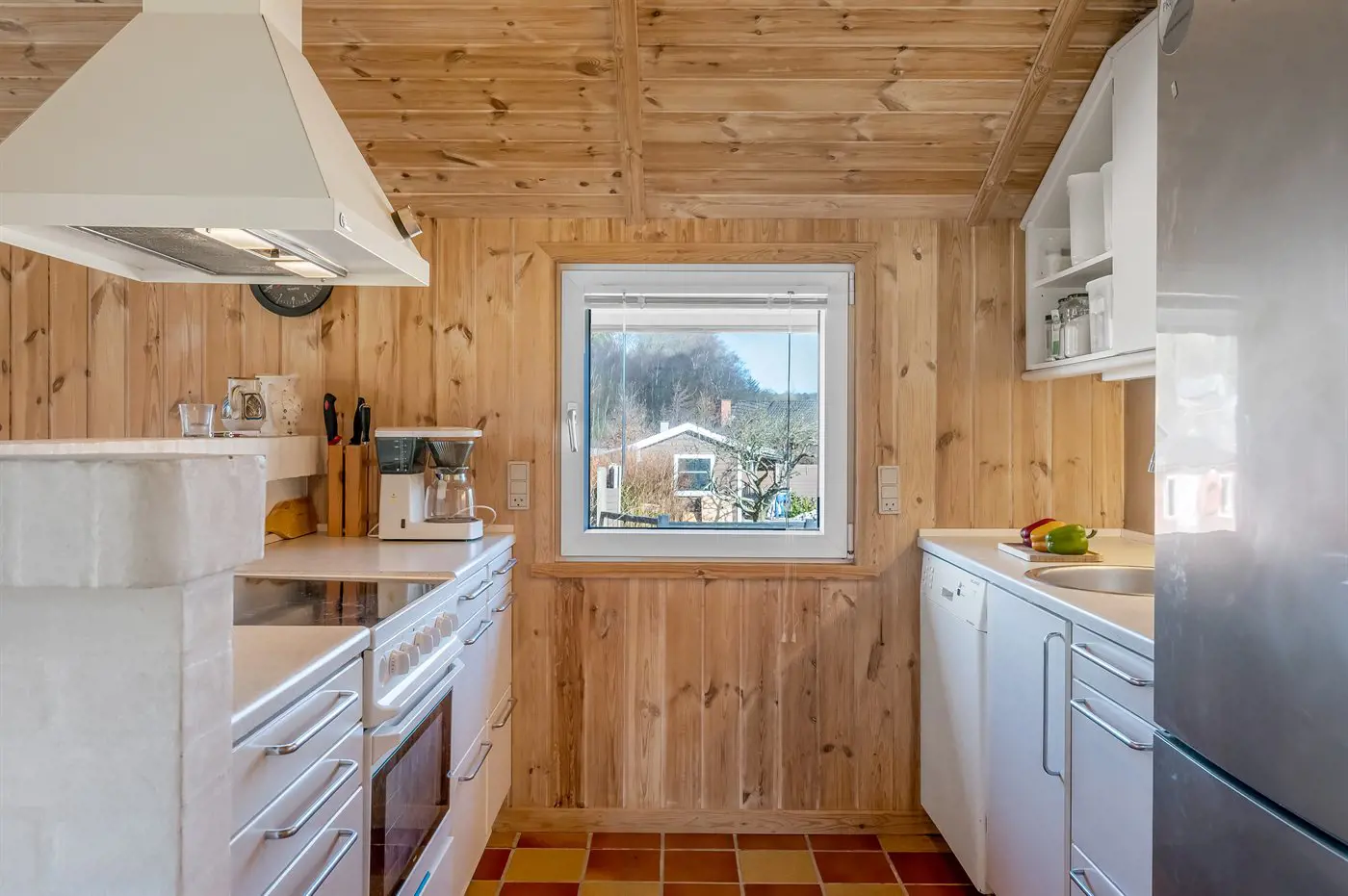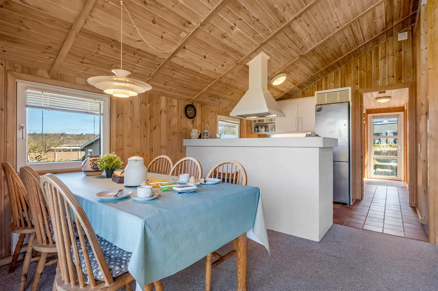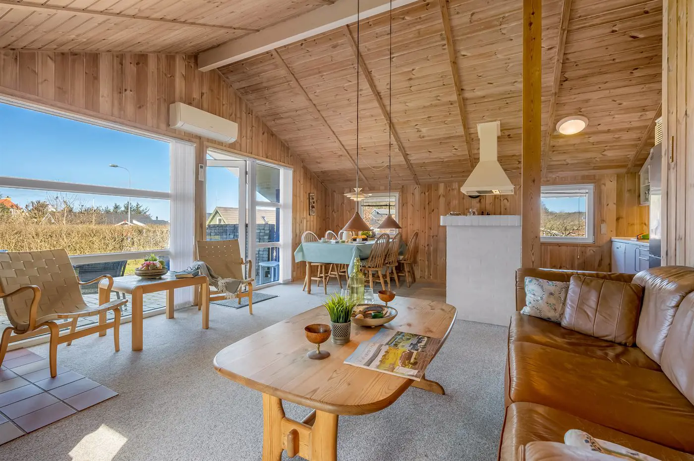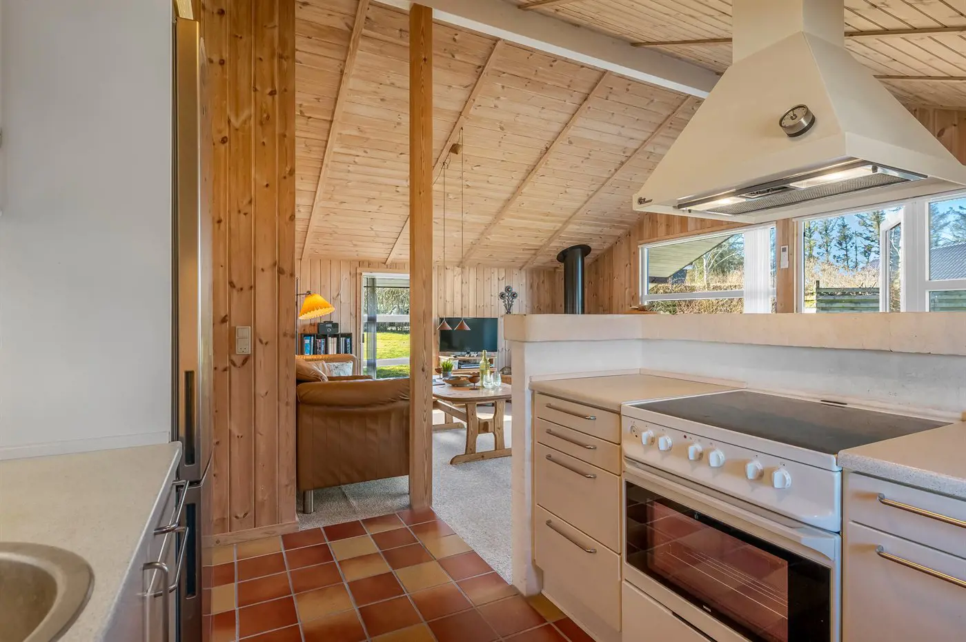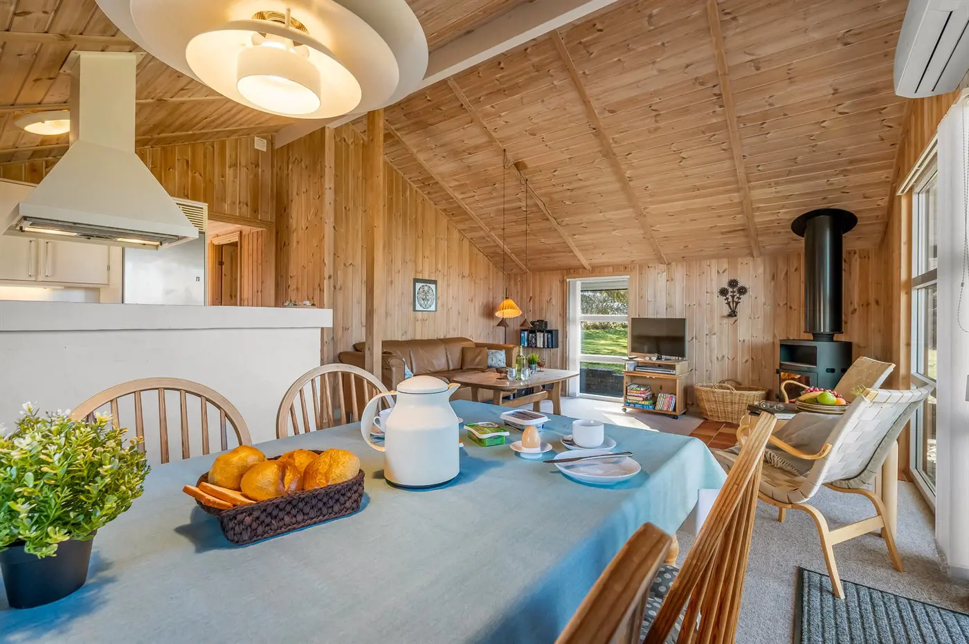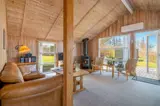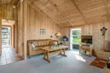 Das Ferienhaus präsentiert sich hell und einladend mit einem gut durchdachten Grundriss, der sowohl Platz für Entspannung als auch für gemeinsames Beisammensein bietet. Das offene Wohnzimmer, mit großen Fensterfronten die viel Licht hereinlassen und eine enge Verbindung zur Natur draußen schaffen, ist der natürliche Mittelpunkt des Hauses. Die Küche ist offen mit dem Wohnbereich verbunden, sodass ihr euch jederzeit nahe seid – egal, ob ihr das Essen zubereitet oder es euch gemütlich macht.