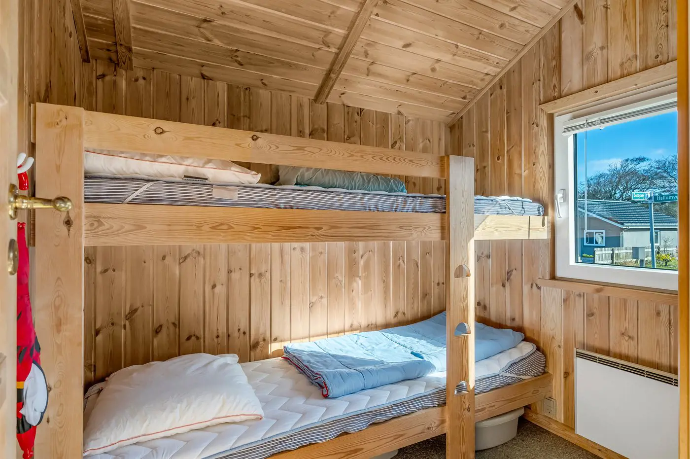 Die Schlafplätze verteilen sich auf 2 Schlafräume. 2 Schlafplätze in einem Doppelbett. 2 Schlafplätze in einem Etagenbett.