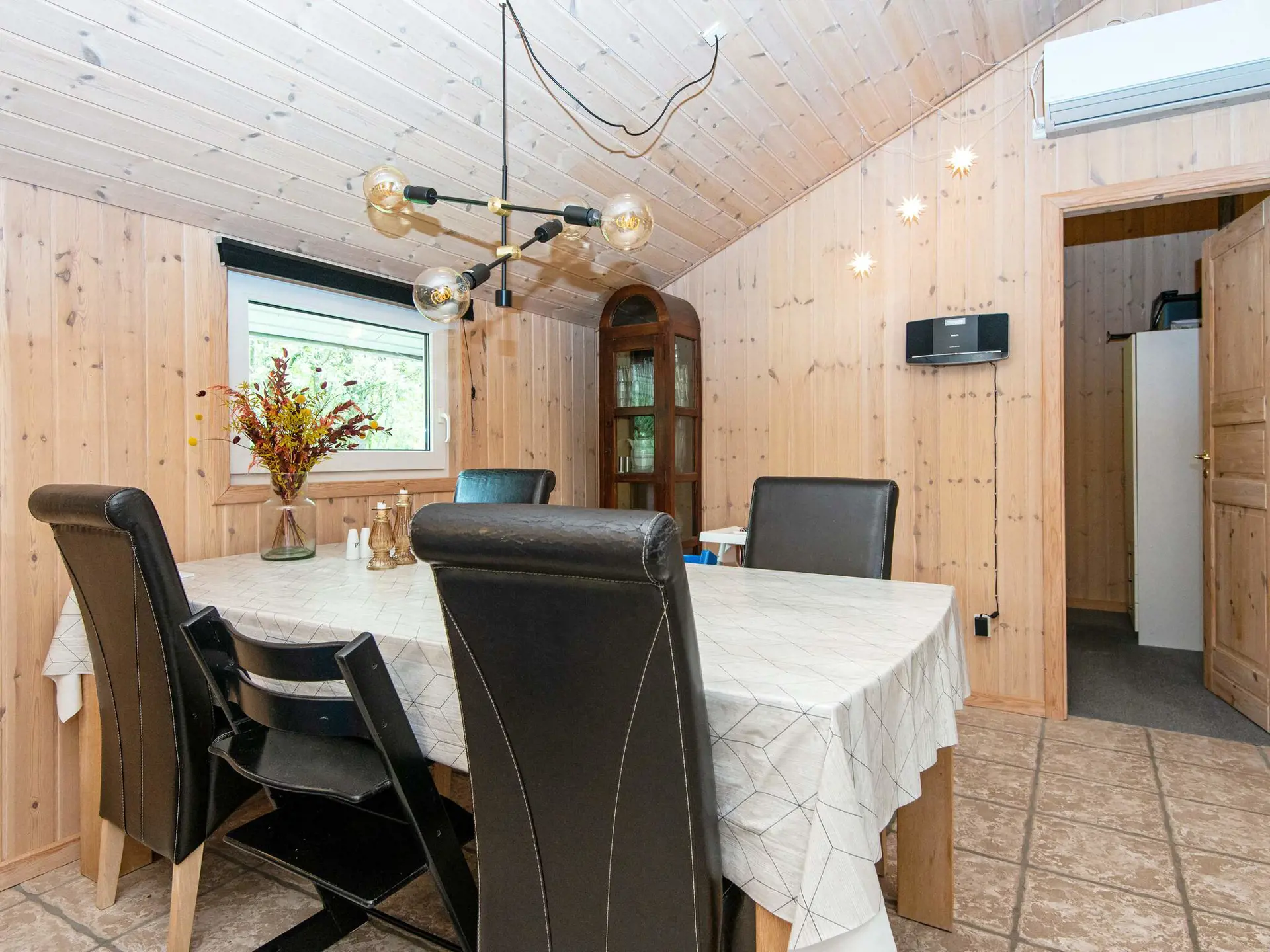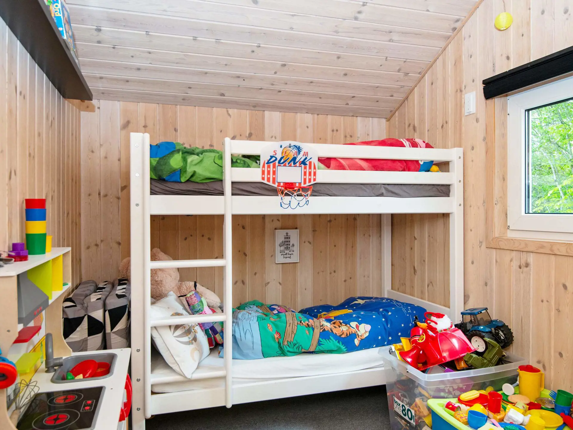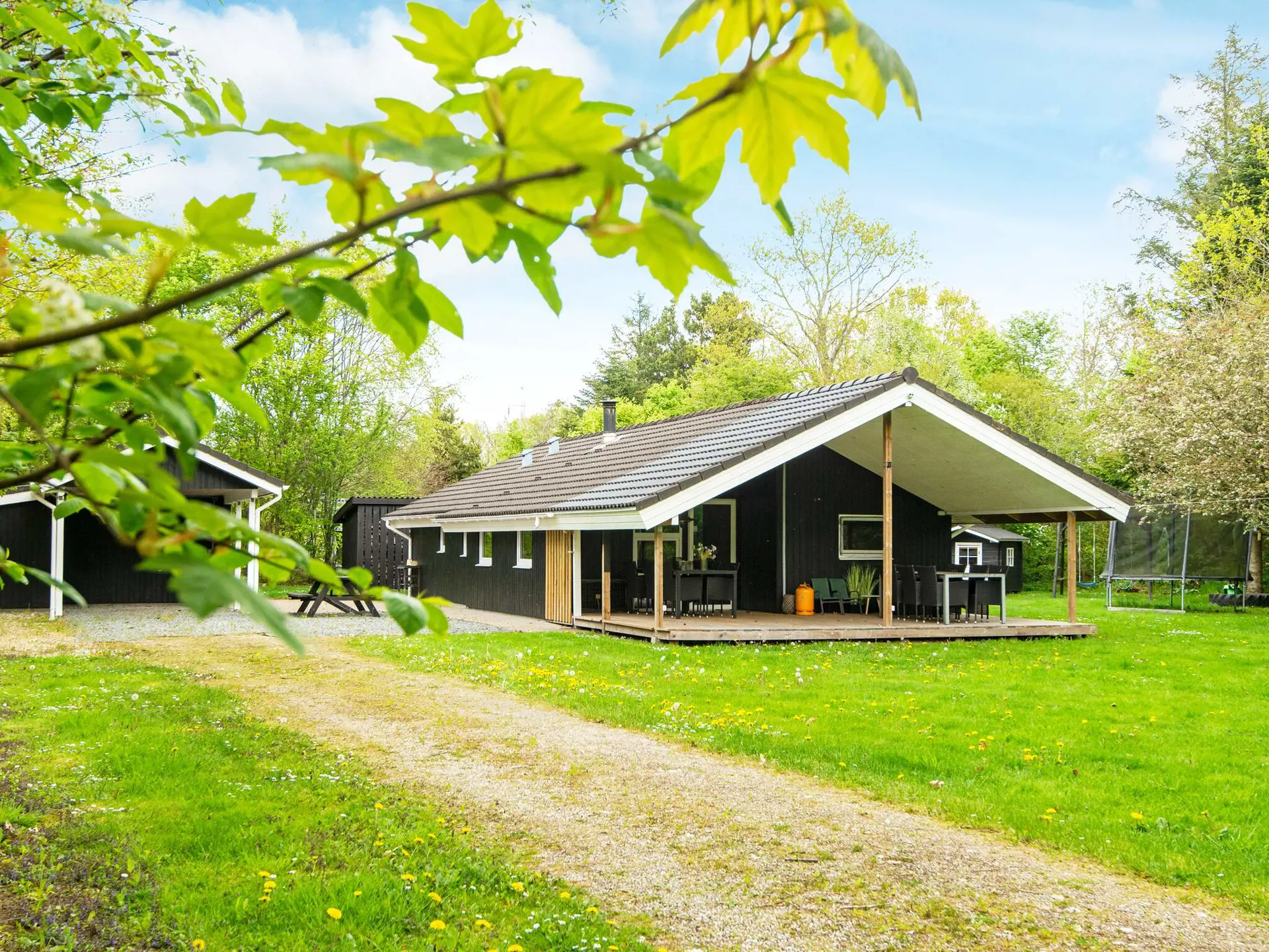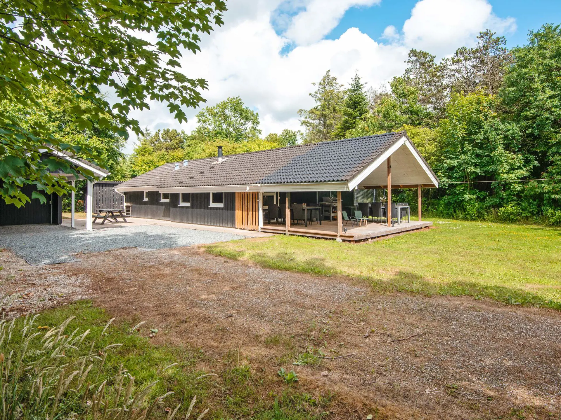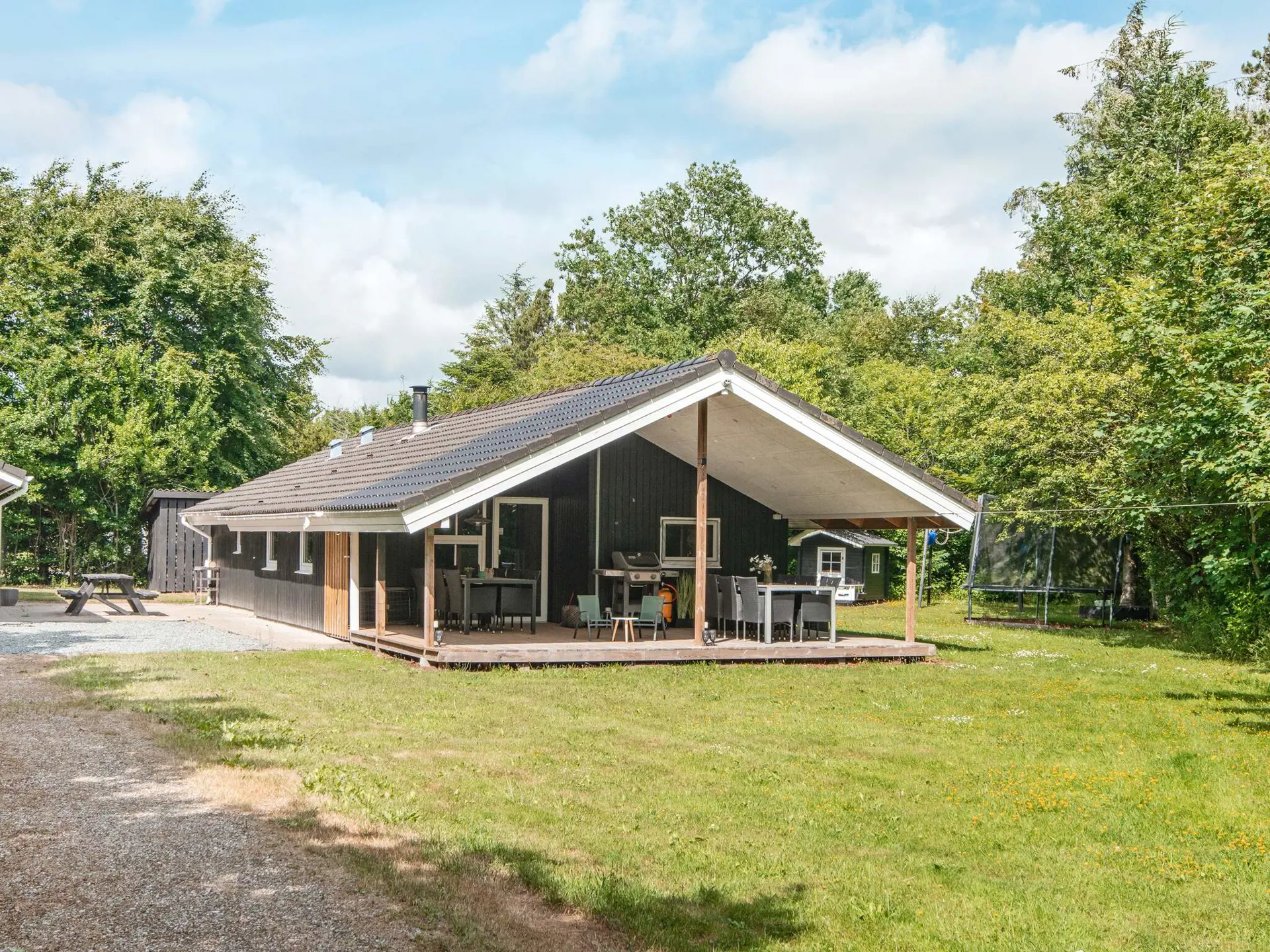 Ringsum das Ferienhaus findet man mehrere Terrassenflächen, auf denen man die Sonnentage sowie die schöne Natur von den guten Gartenmöbeln und Sonnenliegen aus genießen kann. Vom Wohnbereich, der in hellem, typisch skandinavischem Stil eingerichtet ist, haben Sie direkten Zugang zu einer überdachten Terrasse. Für Kinder stehen diverse Spielgeräte bereit, darunter Gartentrampolin (Nutzung nur auf eigenes Risiko), Spielehäuschen, Schaukel und Sandkasten.