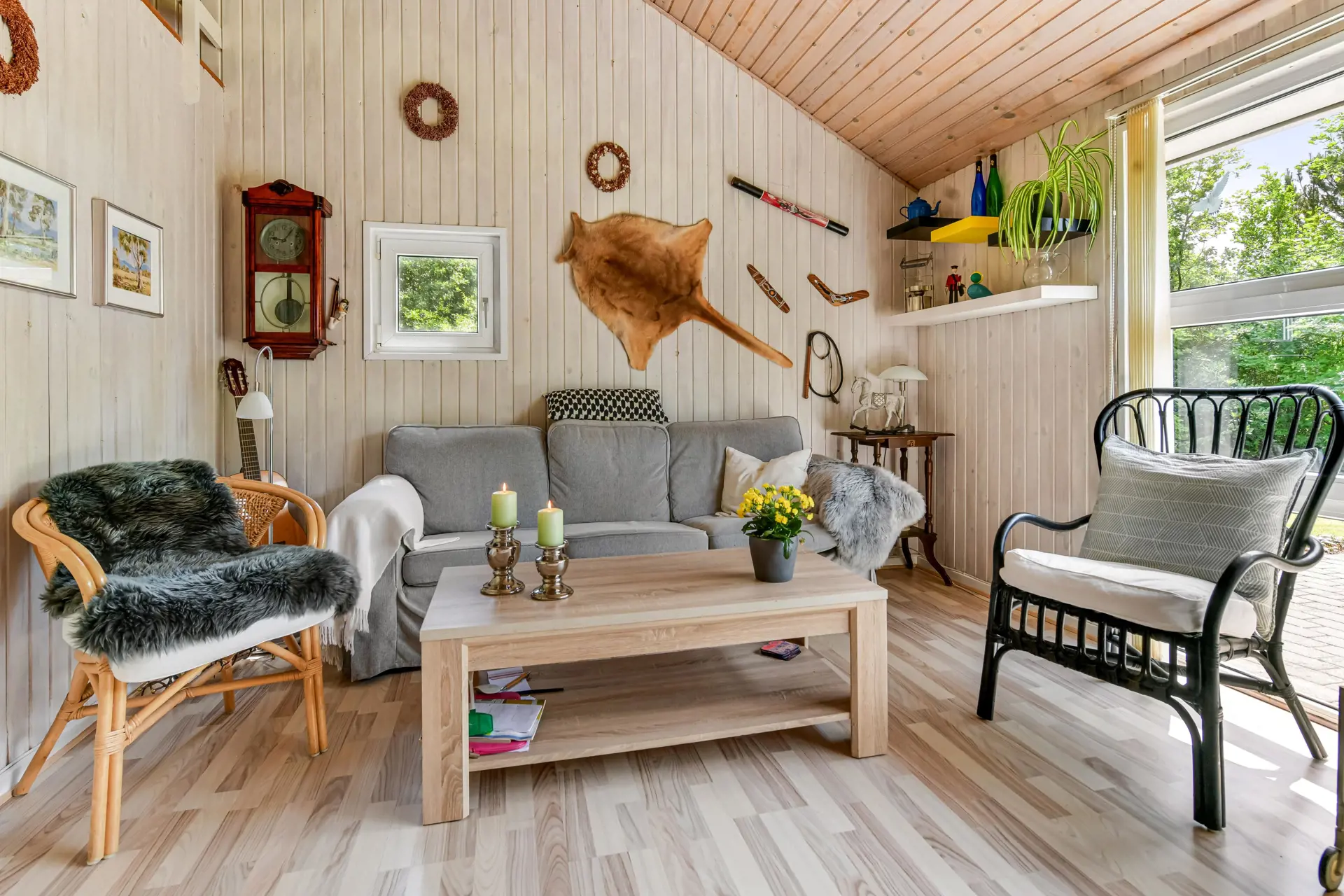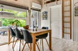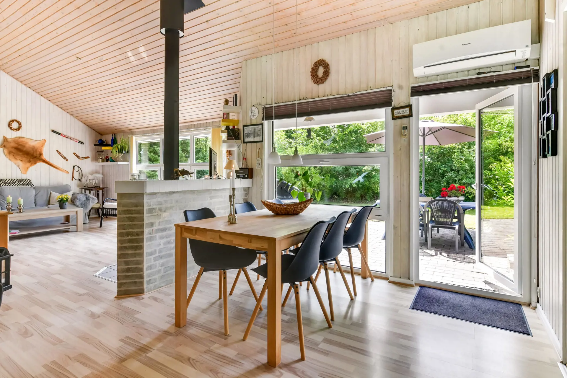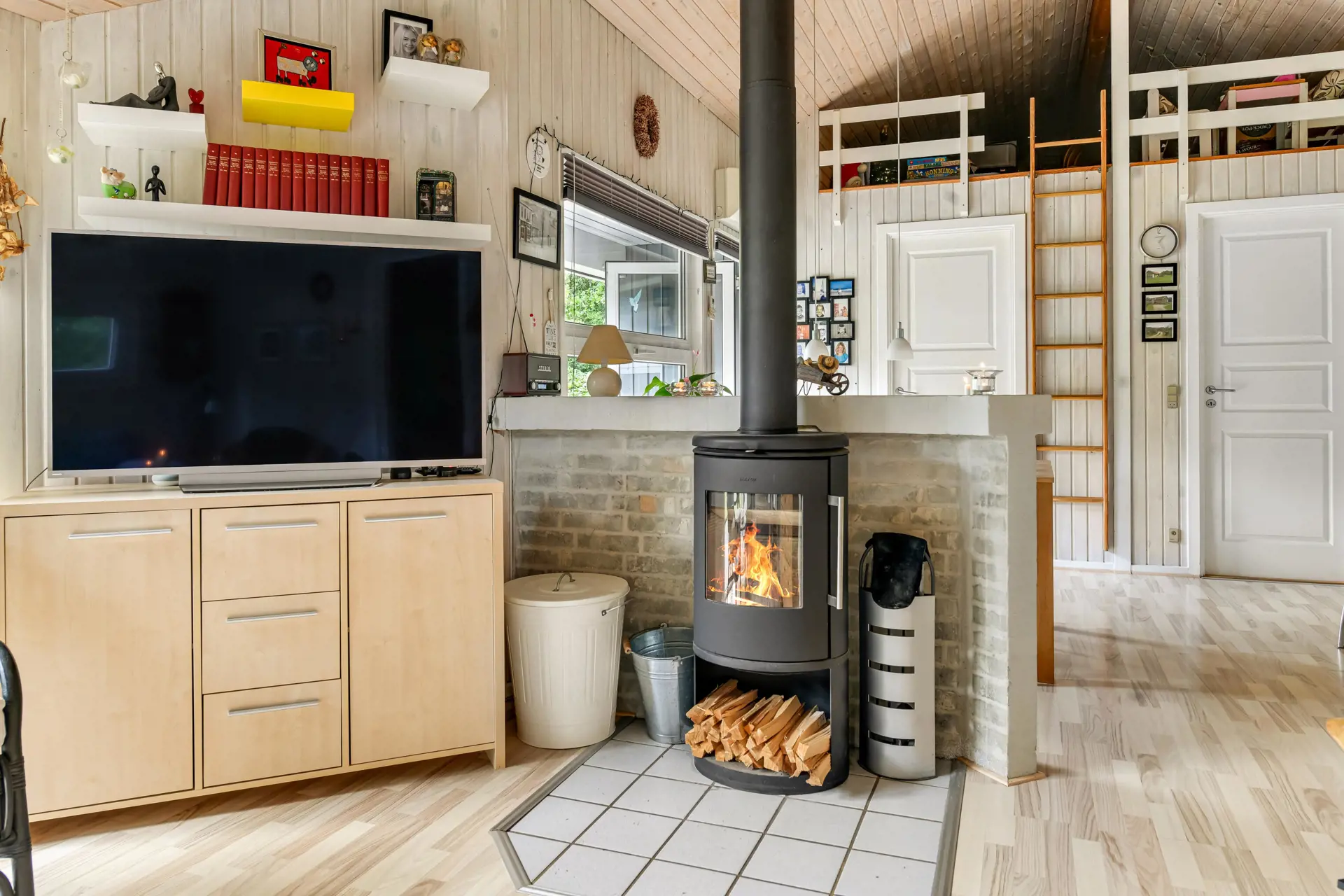 Der mit Liebe zum Detail eingerichtete Wohnbereich empfängt dich mit einer warmen und einladenden Atmosphäre und bildet das Herz des Ferienhauses. Die großen Fensterflächen lassen viel Licht herein und schaffen eine harmonische Verbindung zur Natur. Für gemütliche Abende stehen dir ein Fernseher und ein Kaminofen zur Verfügung. Genieße das Knistern des Kaminofens bei einem Glas Wein oder deinem Lieblingsbuch. Die energiesparende Wärmepumpe sorgt für angenehme Temperaturen zu jeder Jahreszeit.