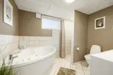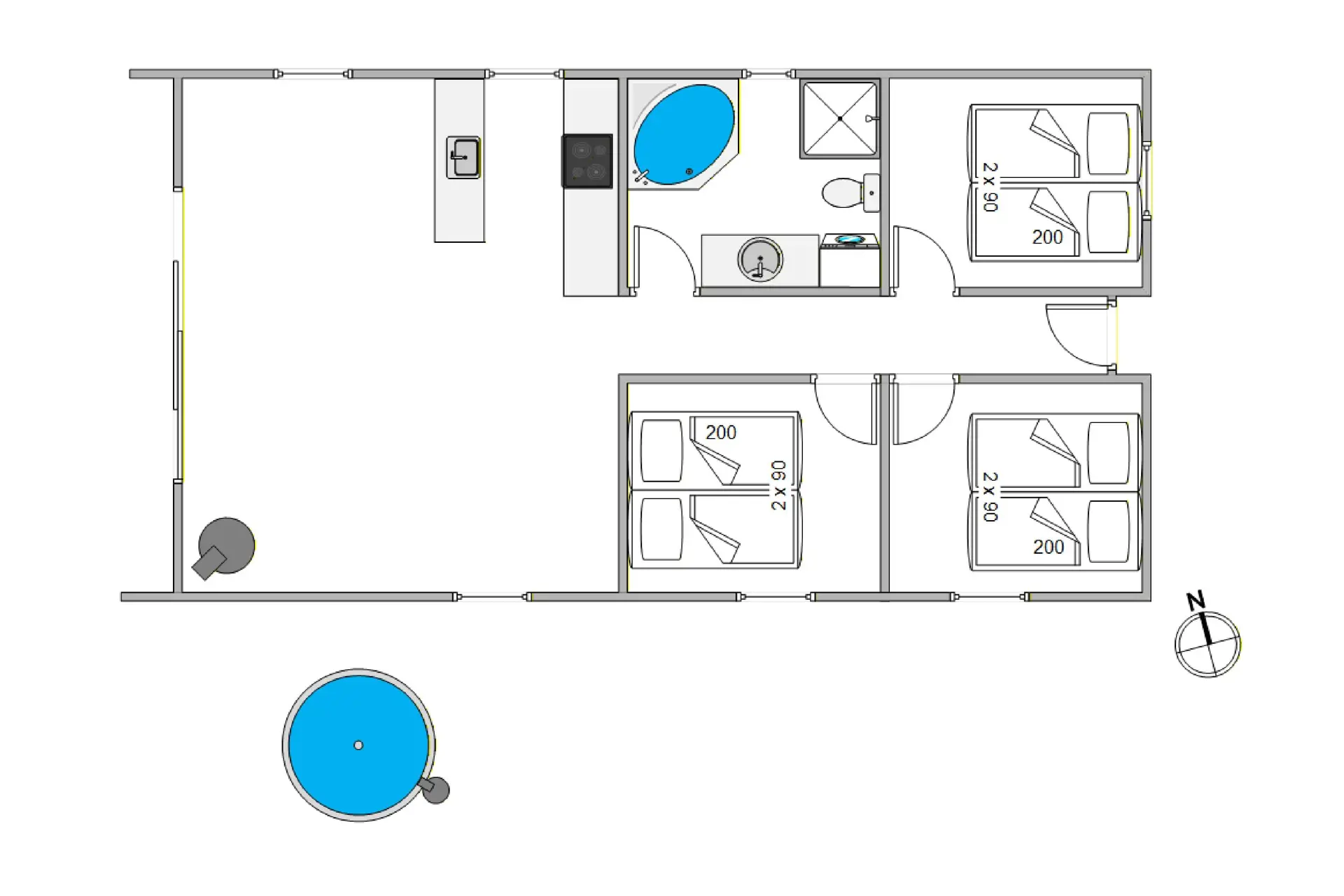 Auch das Tageslichtbad ist auf Komfort ausgelegt, denn die Fußbodenheizung macht besonders morgens einen spürbaren Unterschied. Dazu kommen ein entspanneneder Whirlpool und eine Waschmaschine, damit Handtücher und Outdoor-Sachen schnell wieder frisch sind. Ihr schlaft in 3 Schlafzimmern mit bequemen Doppelbetten, sodass jeder seinen Rückzugsort hat.