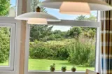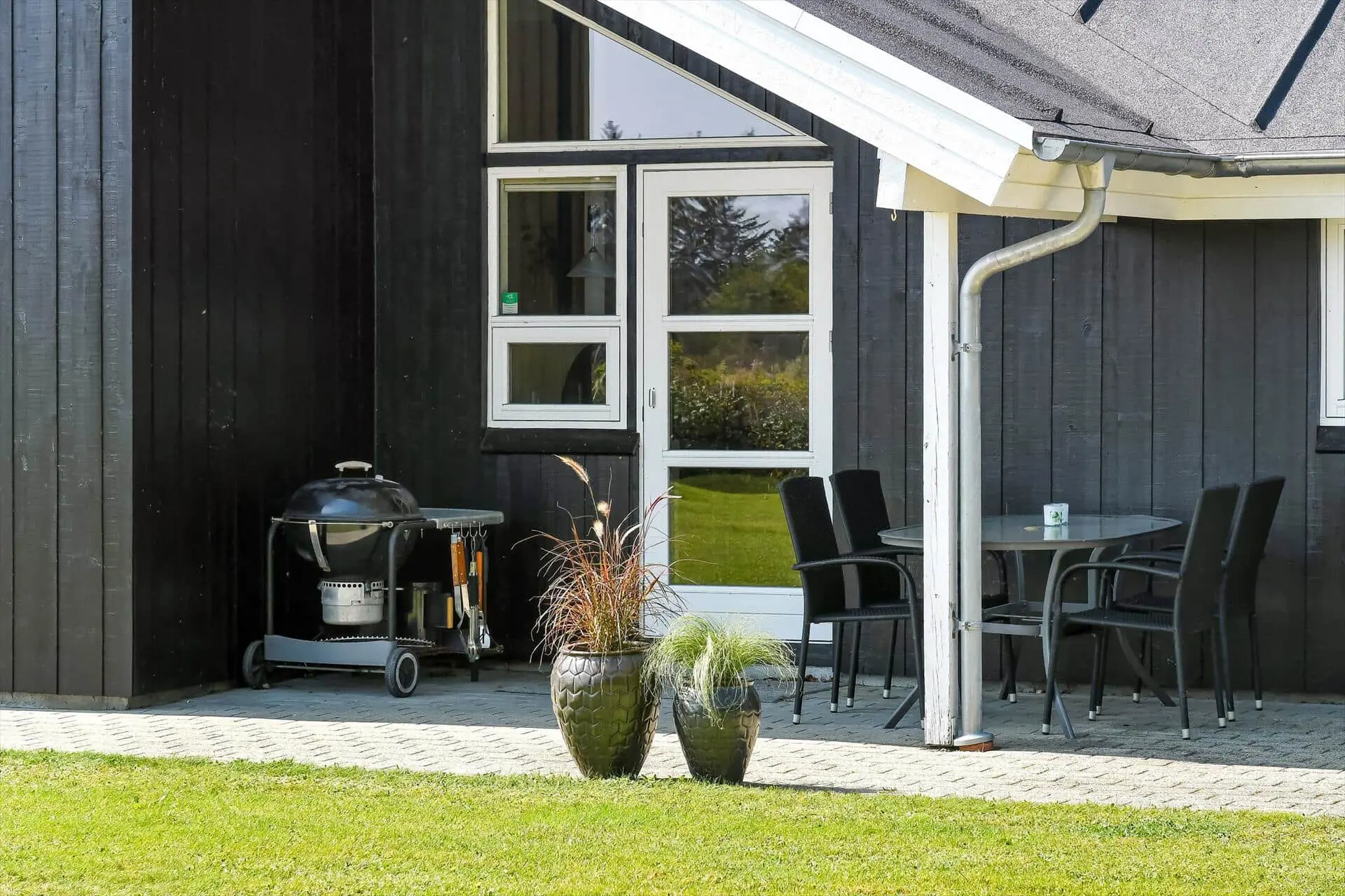 Die Lage des Ferienhauses an einem ruhigen Feldgebiet vermittelt ein herrliches Gefühl, der Natur ganz nah zu sein. Von der Terrasse aus kannst du den Blick über die offene Landschaft schweifen lassen, während du dem Vogelgesang lauschst und die frische Luft genießt. Die Terrasse ist teilweise überdacht, sodass du immer einen Platz in der Sonne oder im Schatten findest – perfekt für den Morgenkaffee oder lange Sommerabende mit Grill und guten Gesprächen. Hier kannst du dich entspannt zurücklehnen und abschalten – ob mit einem guten Buch, einem Glas Wein oder einfach mit deinen Gedanken, die frei umherschweifen. Mit der grünen Umgebung um dich herum und den Aktivitätsmöglichkeiten direkt vor der Tür lässt sich das Urlaubsgefühl leicht finden – sowohl in Momenten der Ruhe als auch, wenn dir nach Spiel und Geselligkeit ist.