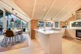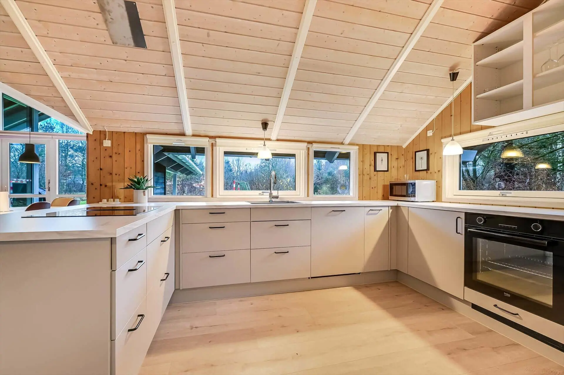 Sobald du das Ferienhaus betrittst, spürst du sofort die entspannte Urlaubsatmosphäre. Die Einrichtung ist hell und einladend, und es gibt viel Platz, um zusammenzukommen und Zeit miteinander zu verbringen. Die moderne Küche ist harmonisch in den Wohnbereich integriert, sodass Gespräche frei fließen können, während die Mahlzeiten des Tages zubereitet werden. Hier kannst du den Tag mit dem Duft von frisch gebrühtem Kaffee beginnen und den Abend nach einem langen Tag an der frischen Luft mit einem guten Glas Wein ausklingen lassen.