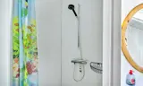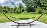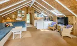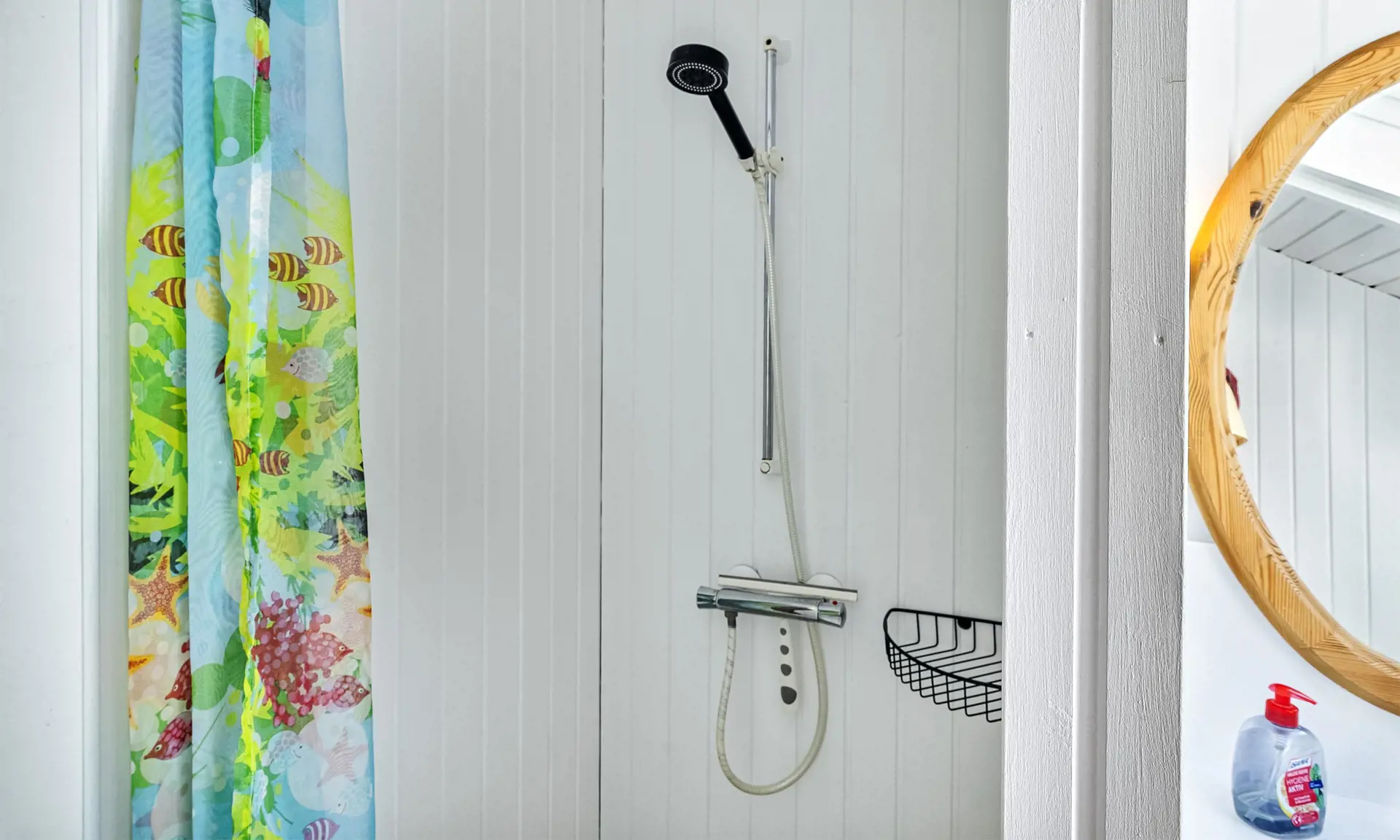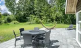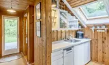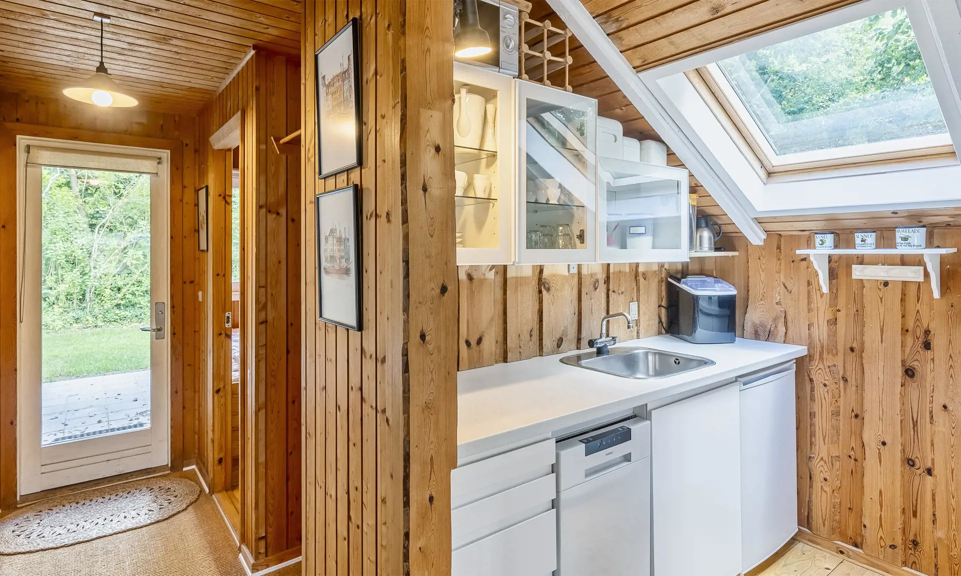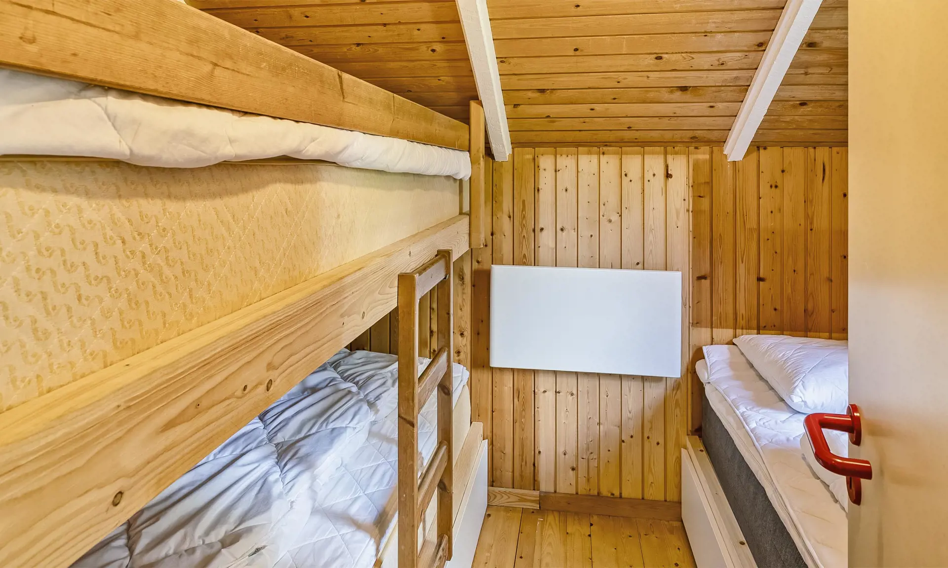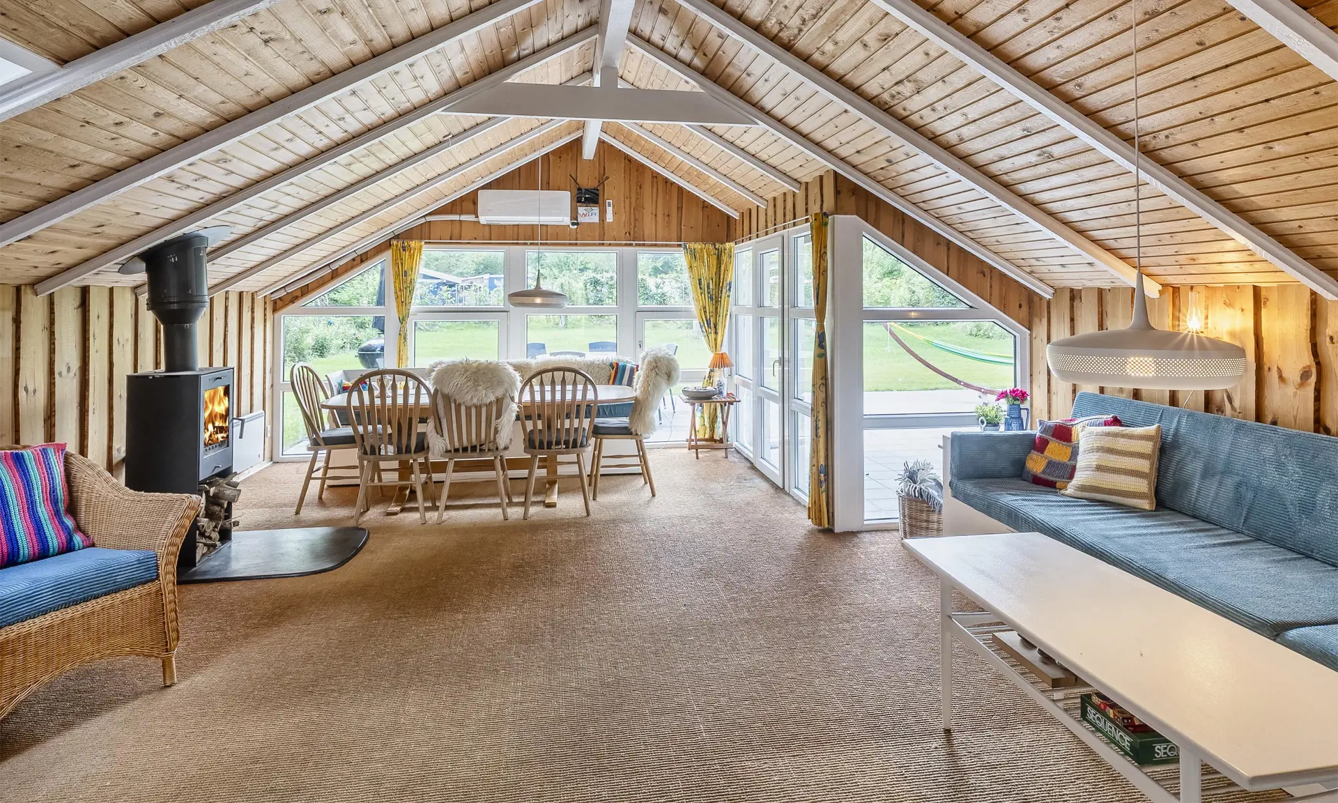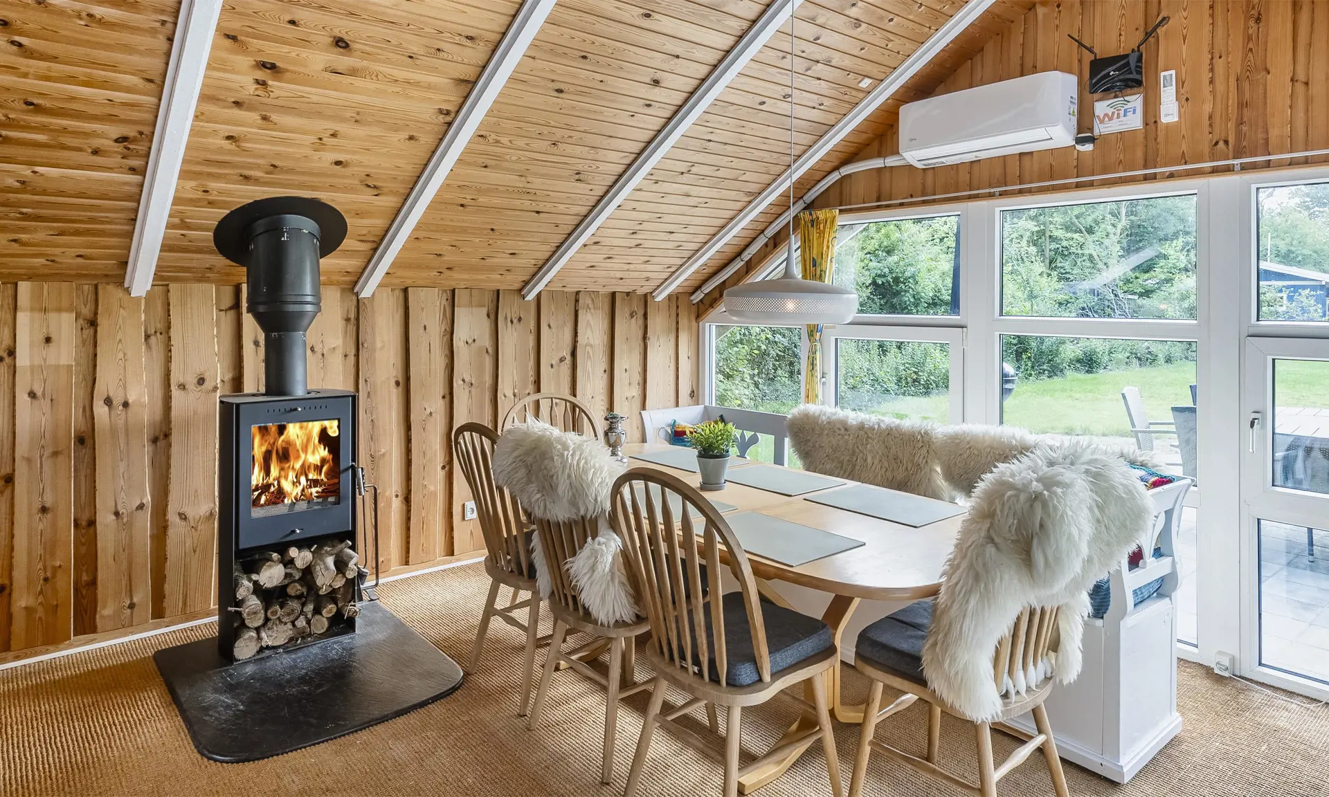 Das Ferienhaus ist mit einer offenen Küche in Verbindung mit dem Essbereich und einem Wohnzimmer mit offenem Dachfirst eingerichtet. Von hier aus haben Sie Zugang zur großen Terrasse. Das Badezimmer verfügt über Toilette, Waschbecken und Dusche. Es gibt zwei Schlafzimmer mit Platz für insgesamt vier Personen: eines mit Doppelbett und eines mit zwei Einzelbetten (DB + 2 EB). Im Wohnzimmer finden Sie einen Kaminofen und eine energieeffiziente Wärmepumpe, die für eine gemütliche und angenehme Wärme sorgt. Der große Garten lädt zu vielen Aktivitäten für die ganze Familie ein.