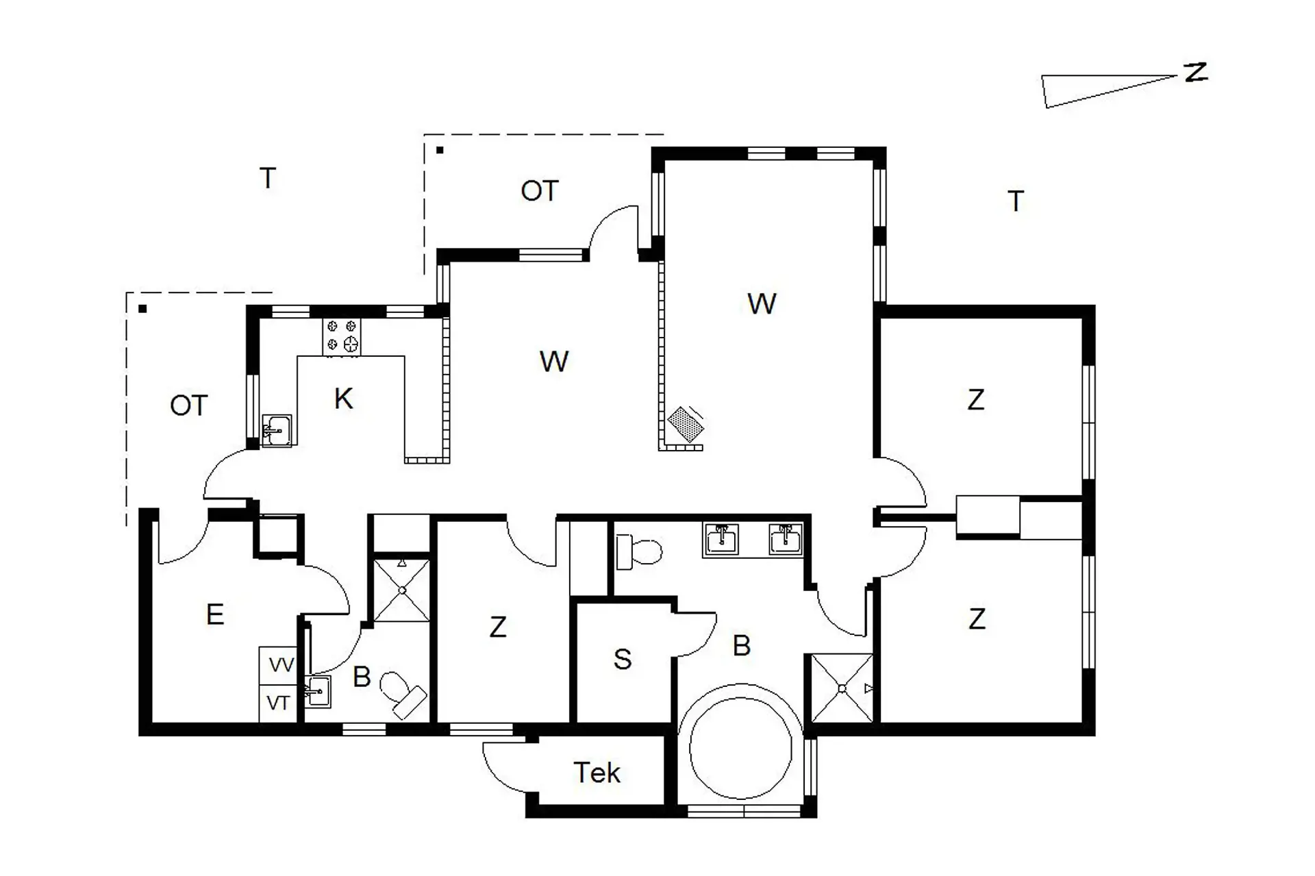 Auf dem Gelände wurden ein Beachvolleyballplatz, eine Kletterburg und mehrere kinderfreundliche Ecken errichtet. Das Ferienhaus verfügt über eine große und geräumige Küche / Wohnzimmer mit Fußbodenheizung und direktem Zugang zu mehreren gut geschützten, vollständig und teilweise überdachten Terrassen.