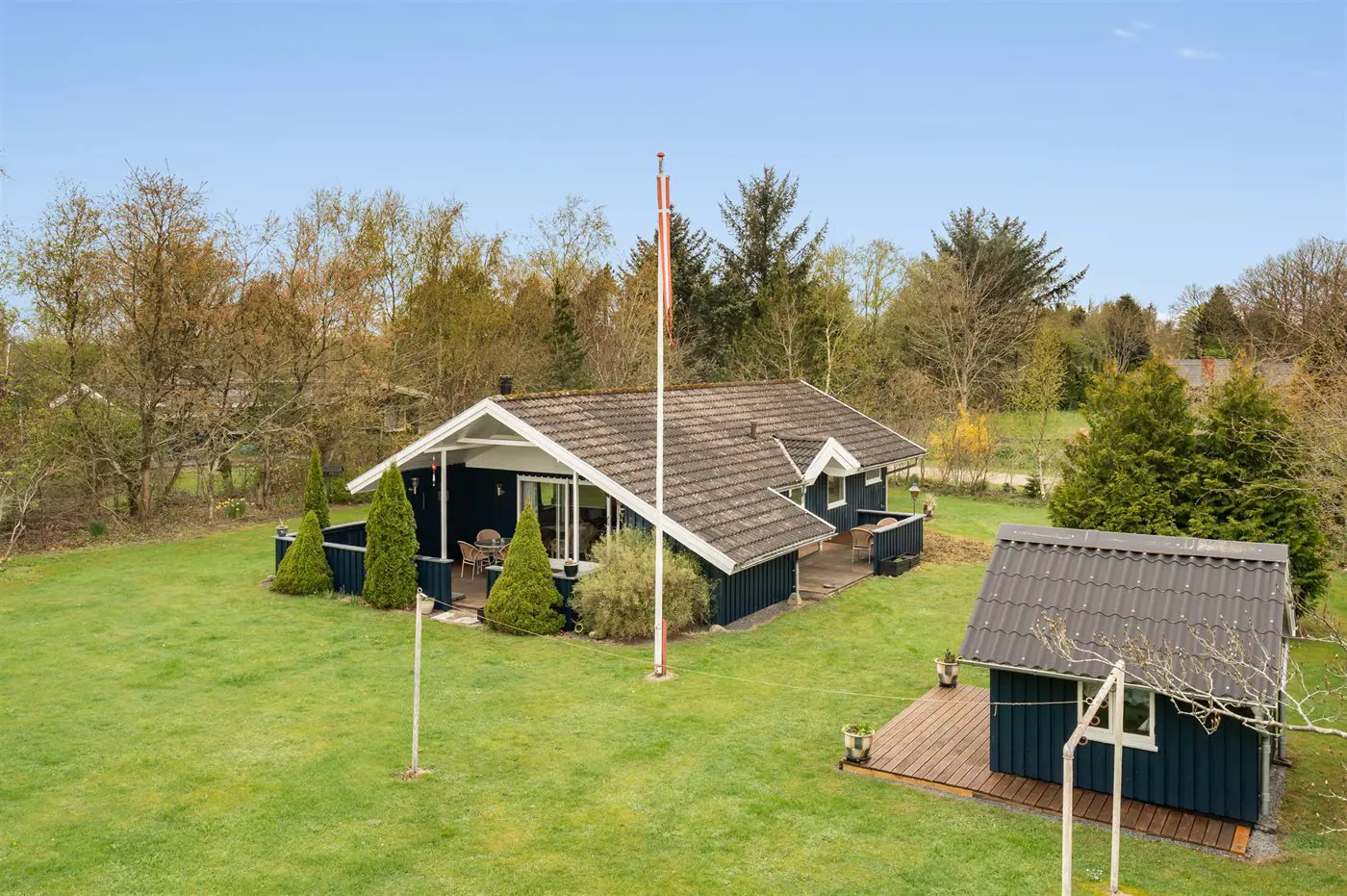 Die Ferienunterkunft liegt auf einem 1568 m² großen Naturgrundstück. Die Entfernung zum Meer beträgt 10000 m. Die nächste Einkaufsmöglichkeit liegt 400 m entfernt. Es steht ein offenes Terrassenareal zur Verfügung. Außerdem gibt es überdachte Terrasse. Sandkasten. Trampolin. Spielturm. Es steht ein Grill zur Verfügung. Es ist ein Ladestecker für Elektroautos installiert. Ladestecker Typ 2. Mit einer Ladeleistung von 5 kW.