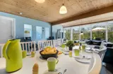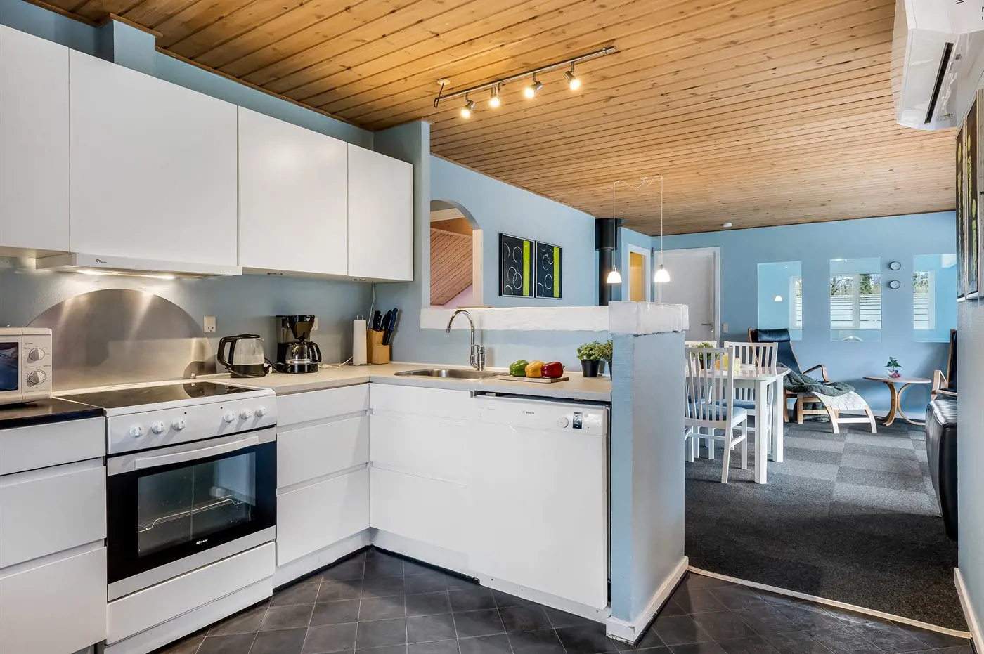 Das Haus ist funktional eingerichtet und bietet genügend Platz, selbst für die große Familie. Die Küche ist gut ausgestattet mit vielen Annehmlichkeiten, und vom geräumigen, nett möblierten Wohnzimmer hast du direkten Zugang zu einer schönen, nach Südwesten ausgerichteten Terrasse. Außerdem verfügt das Haus über ein Badezimmer und eine Gästetoilette.