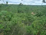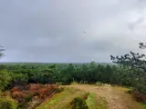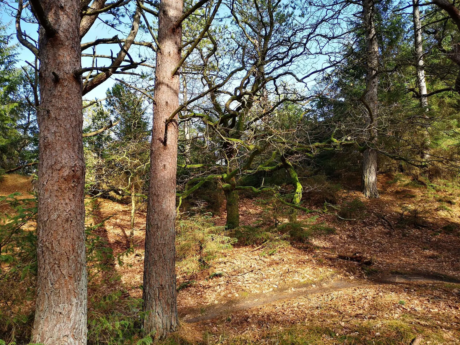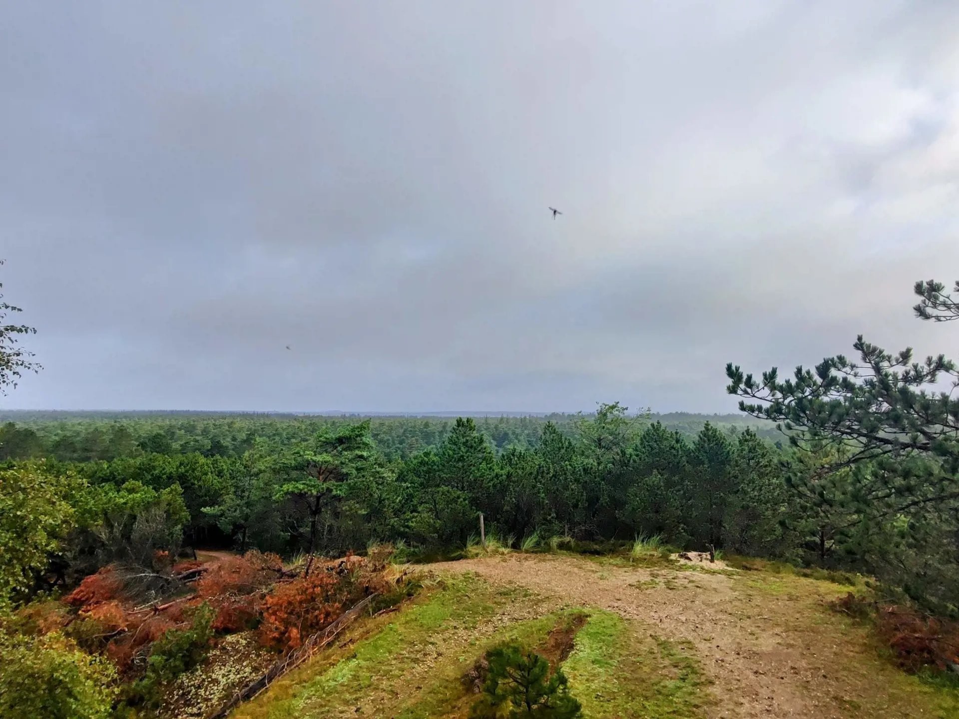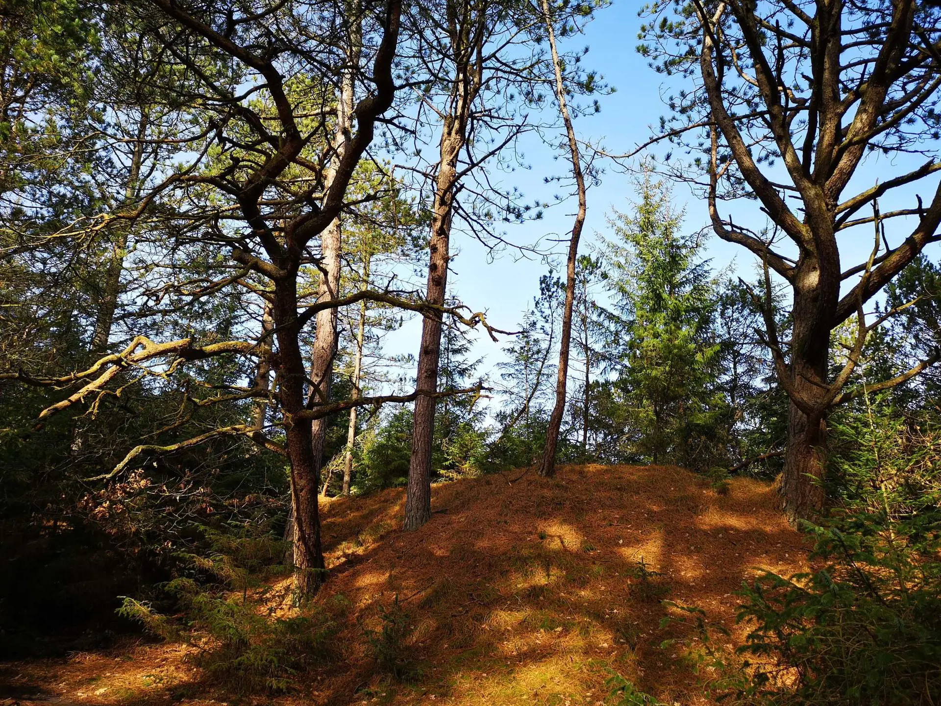 hügeligen Dünengrundstück mit Schaukel und Sandkasten.