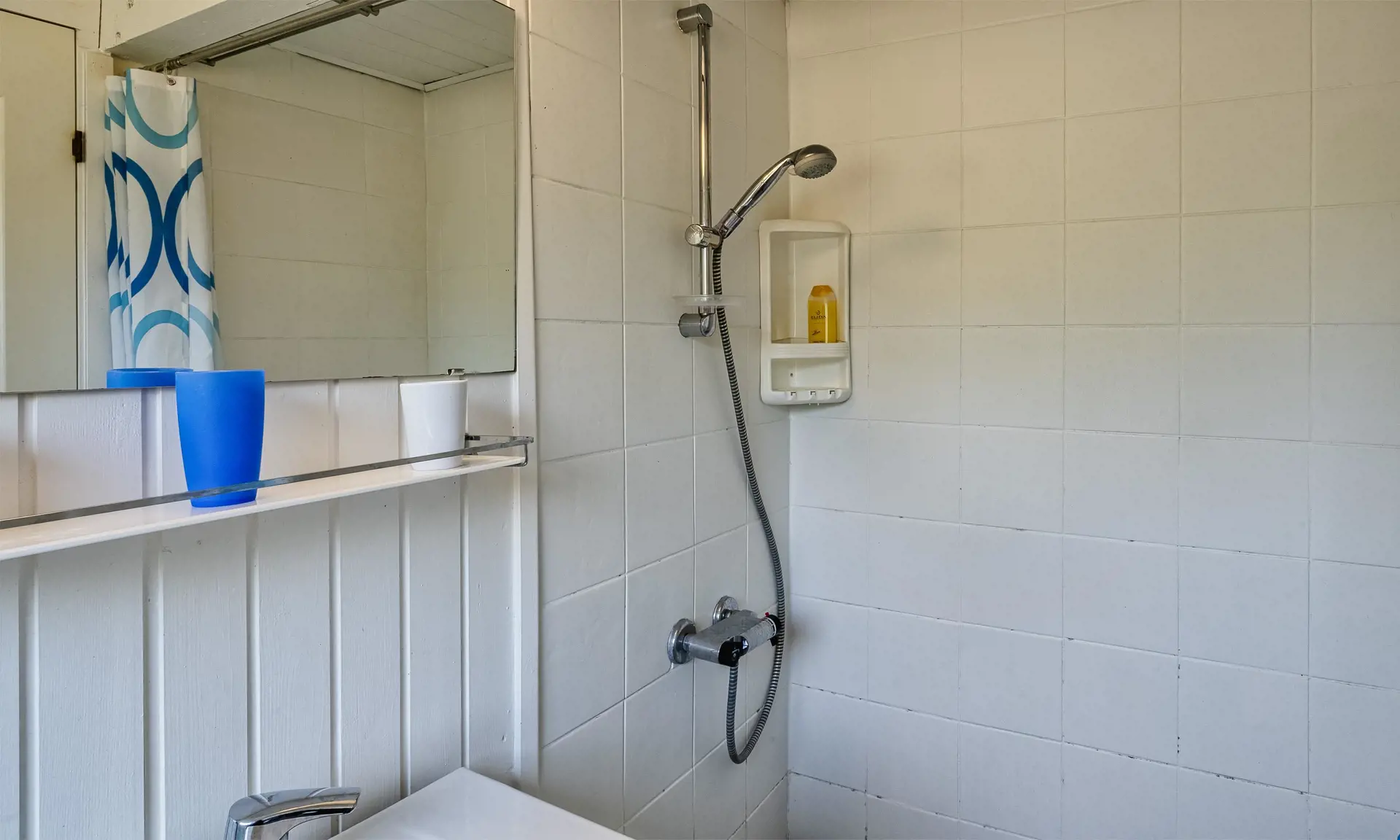 Außerdem gibt es ein Badezimmer mit Dusche.