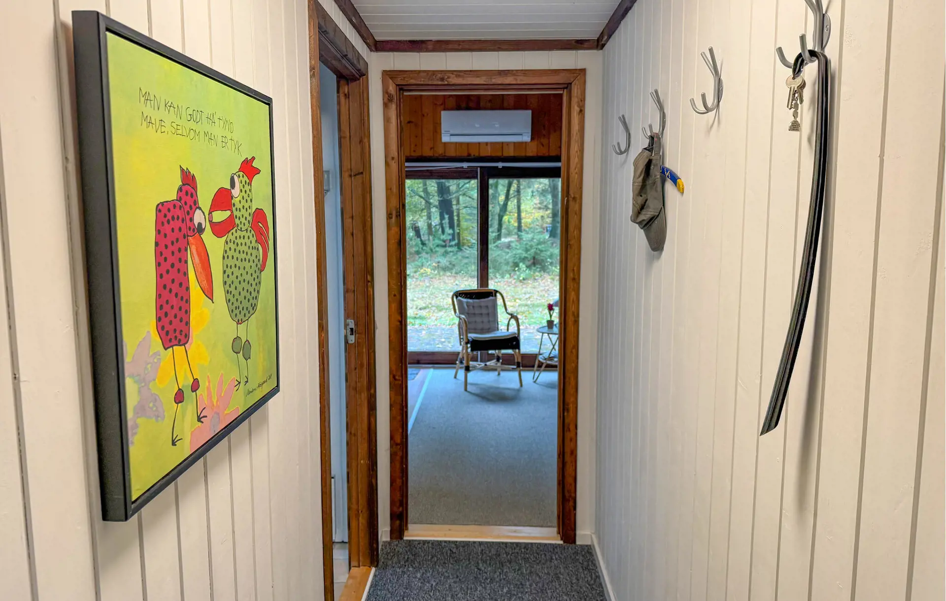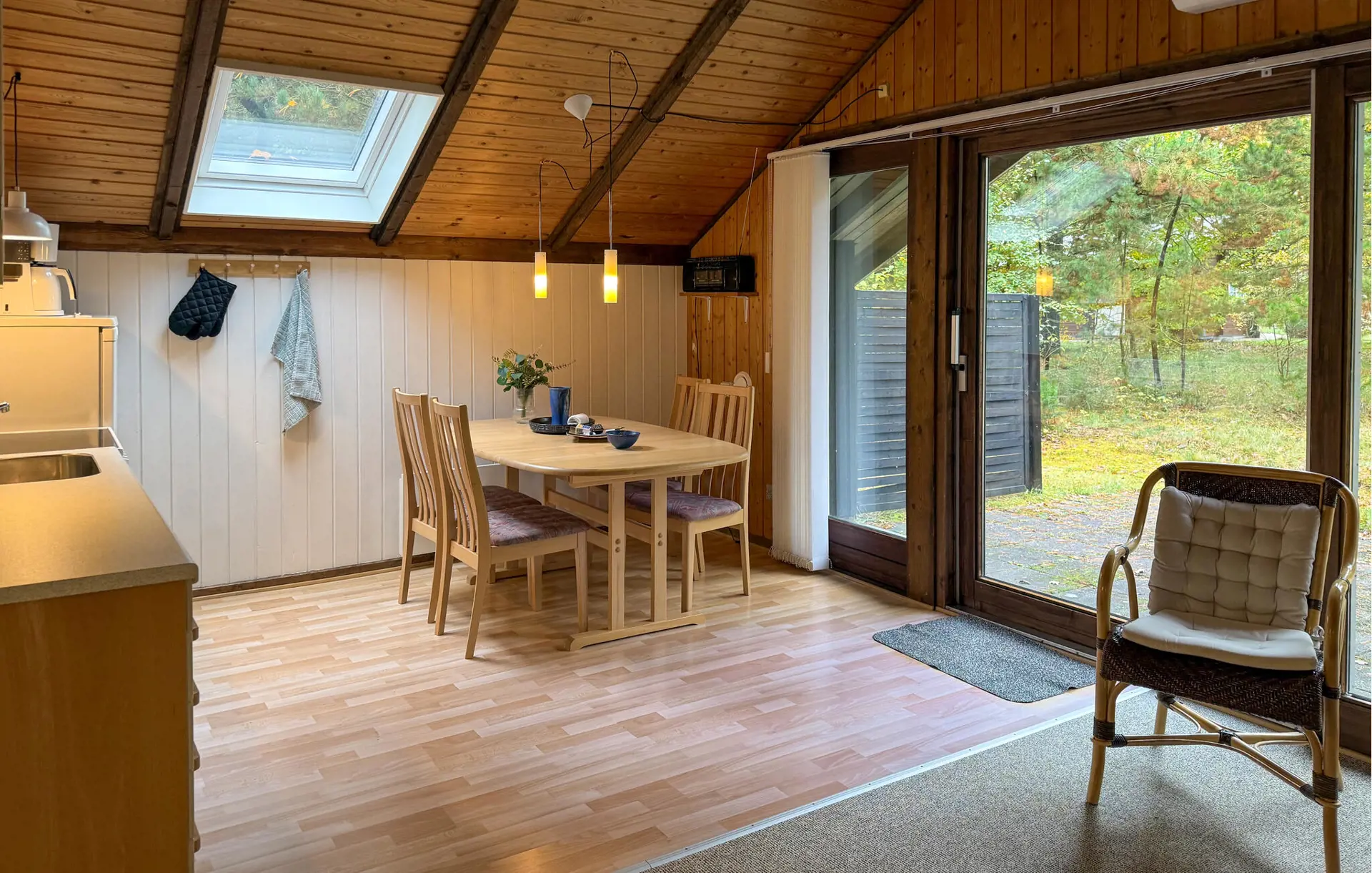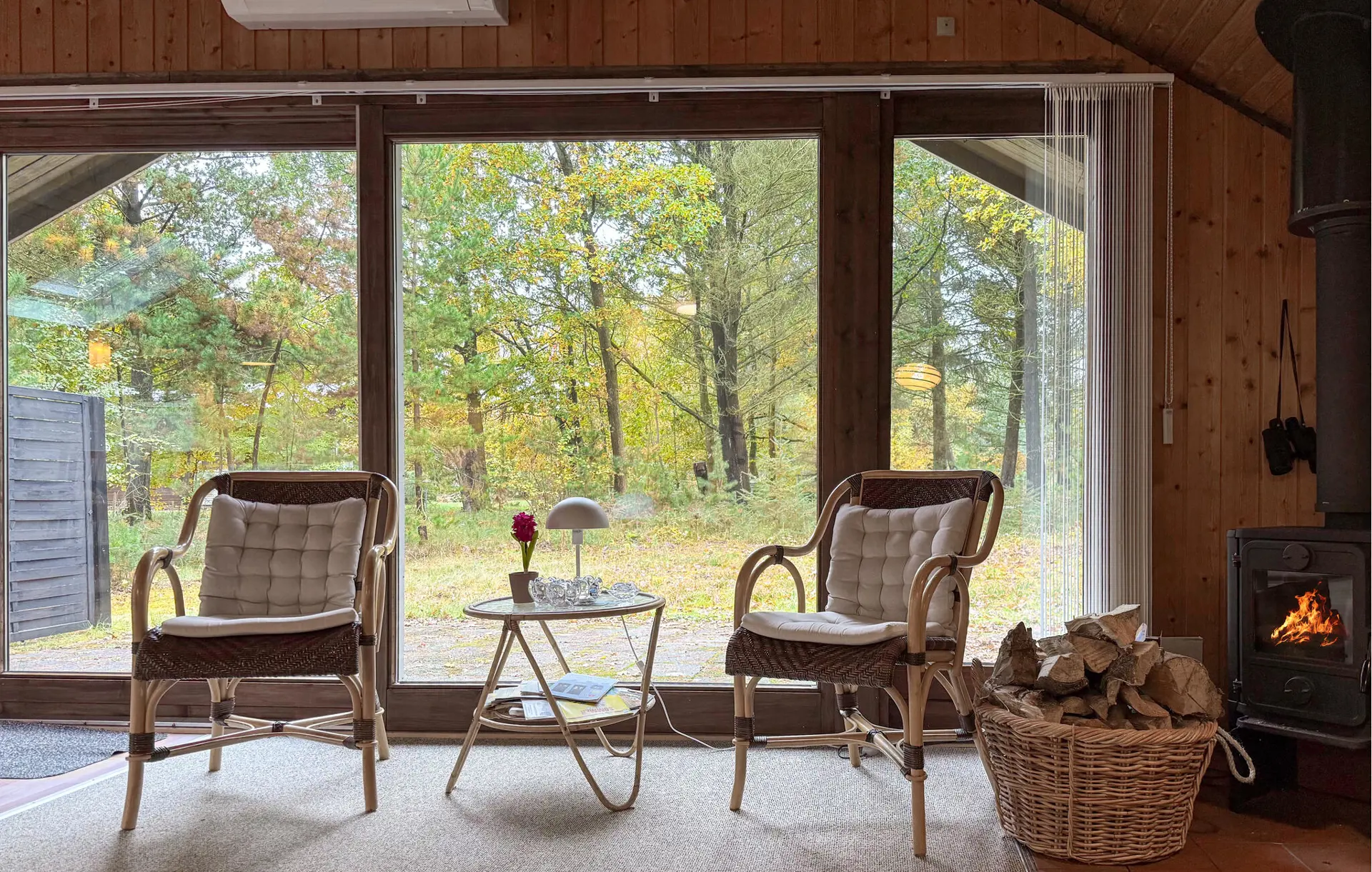 Dieses von hohen Bäumen umgebende Haus ist der ideale Rückzugsort für Ihre Auszeit vom Alltag. Großen Fenstertüren zur Terrasse lassen viel helles Tageslicht ins Innere, während Sie einen schönen Blick nach draußen genießen. Wenn die Abende kühler werden, entzünden Sie einfach den Kaminofen für wohlige Wärme.