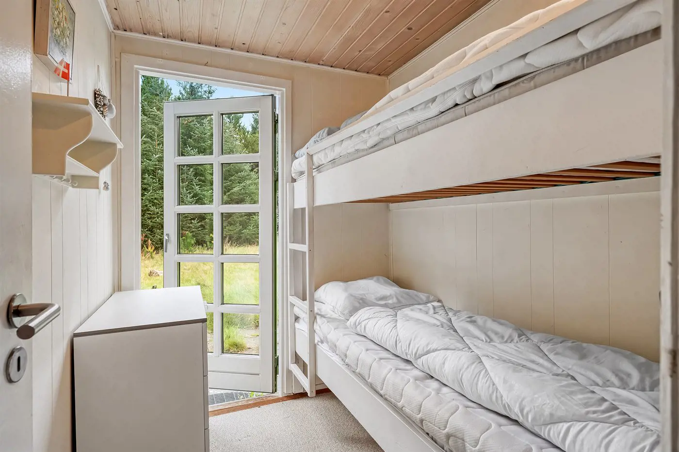 Die Schlafplätze verteilen sich auf 2 Schlafräume. 2 Schlafplätze in einem Doppelbett. 2 Schlafplätze in einem Etagenbett.