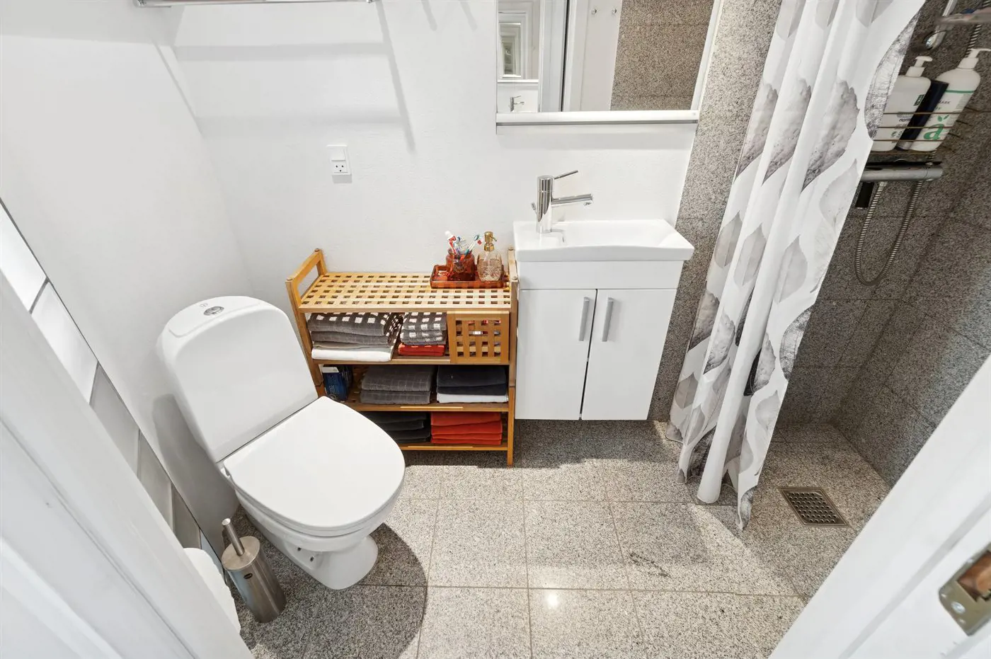 Es gibt 1 Badezimmer mit Dusche und 1 Toilette.